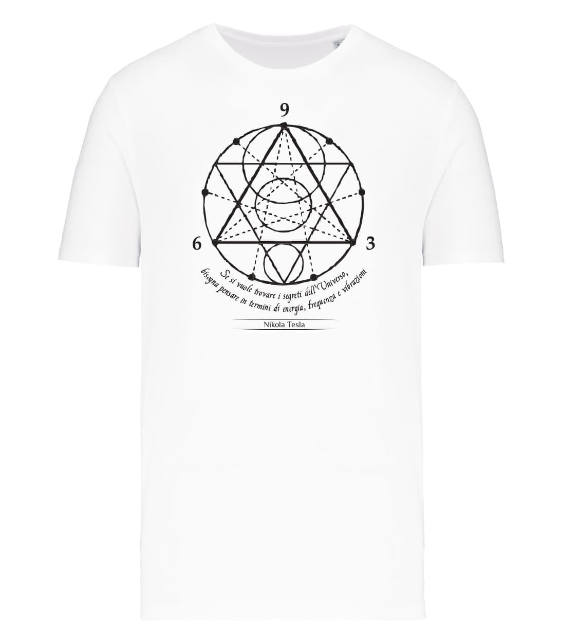 In genere questa citazione apre la presentazione dell’idea che i numeri 3,6,9 siano alla base di geometrie che permetterebbero la “free energy”. Accompagnata a questa citazione viene fatto notare che partendo da un cerchio il cui angolo al centro misura 360 gradi, dividendolo in due parti si ottengono 2 angoli da 180 gradi. Essi a loro volta divisi per due restituiscono 4 angoli da 90 gradi. Divisi a loro volta in due parti originano 8 angoli da 45 gradi. E così via per un numero “n” qualsiasi di iterazioni, così come farebbe una cellula in mitosi.