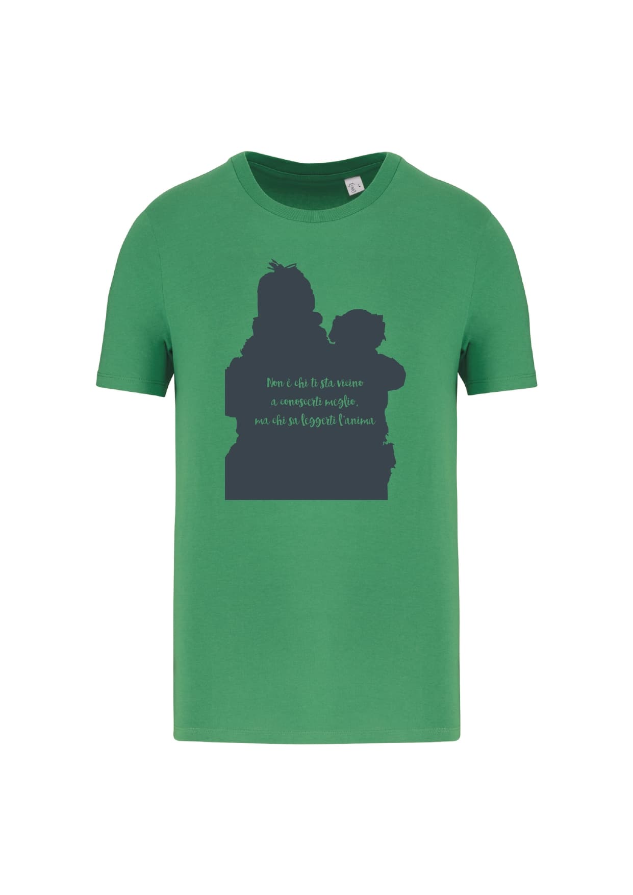 100% cotone biologico pettinato. Taglio aderente. Cuciture laterali. Capo con lavaggio agli enzimi. Finitura a doppia impuntura a fondo manica e fondo capo. Collo a costine 1 x 1. Nastrino di rinforzo in jersey tono su tono nel collo. Certificato STANDARD 100 by OEKO-TEX®N°CQ1007/7, IFTH