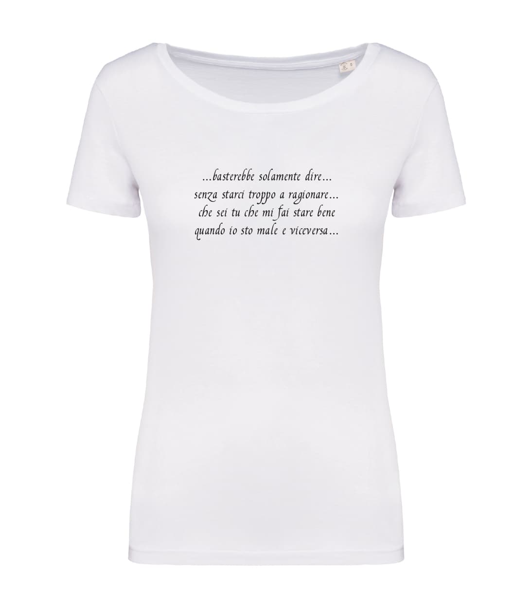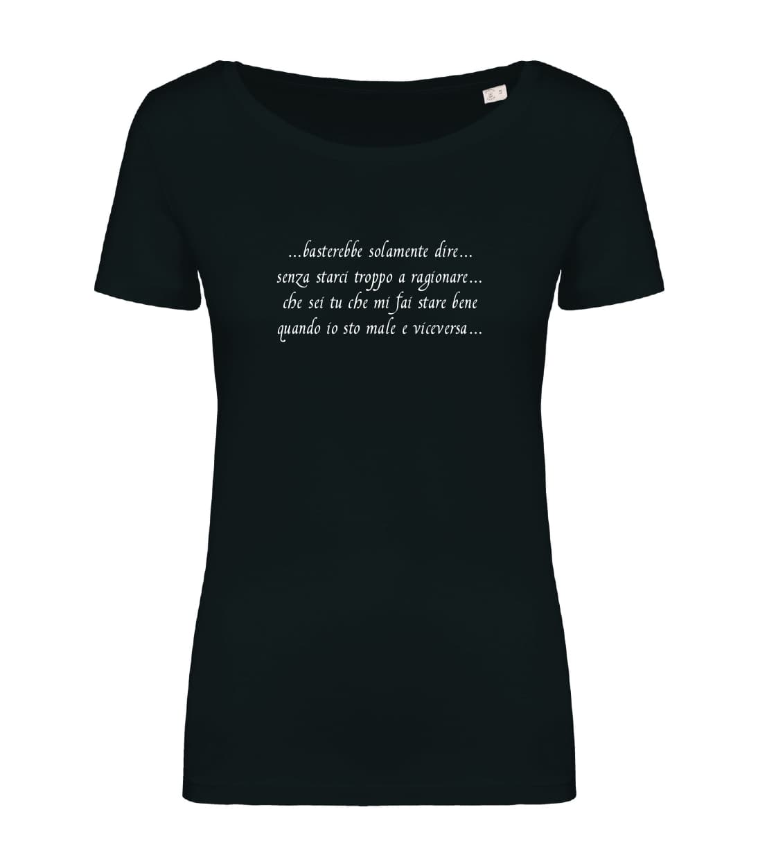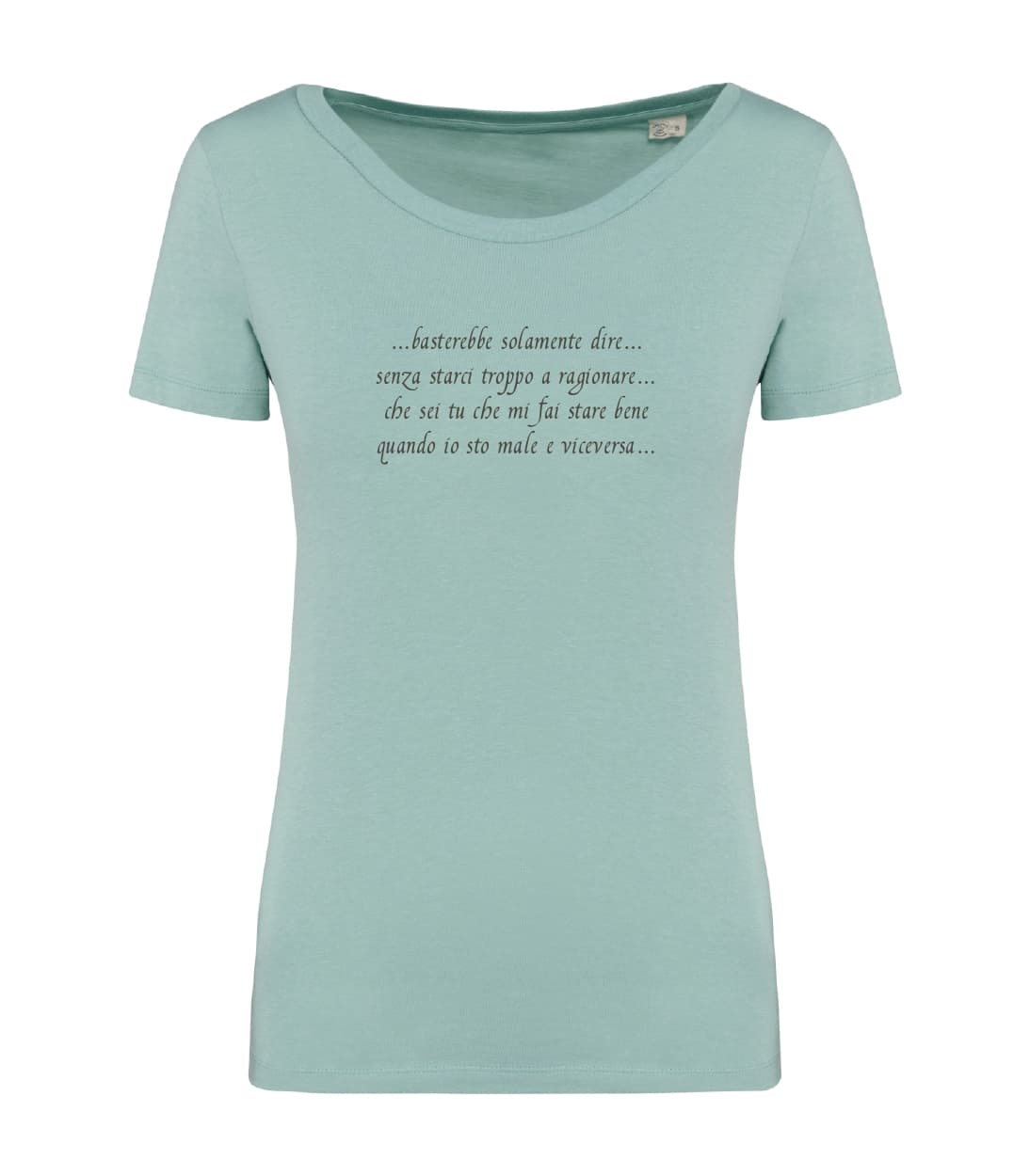 100% cotone biologico pettinato. Taglio aderente. Cuciture laterali. Capo con lavaggio agli enzimi. Collo a costine 1 x 1. Nastrino di rinforzo nel tessuto principale all’interno del collo. Finitura a doppia impuntura a fondo manica e fondo capo. Certificato STANDARD 100 by OEKO-TEX®N°CQ1007/7, IFTH