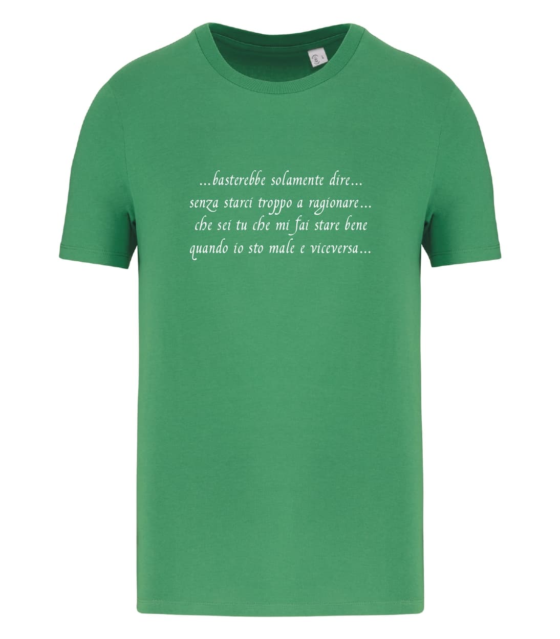 100% cotone biologico pettinato. Taglio aderente. Cuciture laterali. Capo con lavaggio agli enzimi. Finitura a doppia impuntura a fondo manica e fondo capo. Collo a costine 1 x 1. Nastrino di rinforzo in jersey tono su tono nel collo. Certificato STANDARD 100 by OEKO-TEX®N°CQ1007/7, IFTH