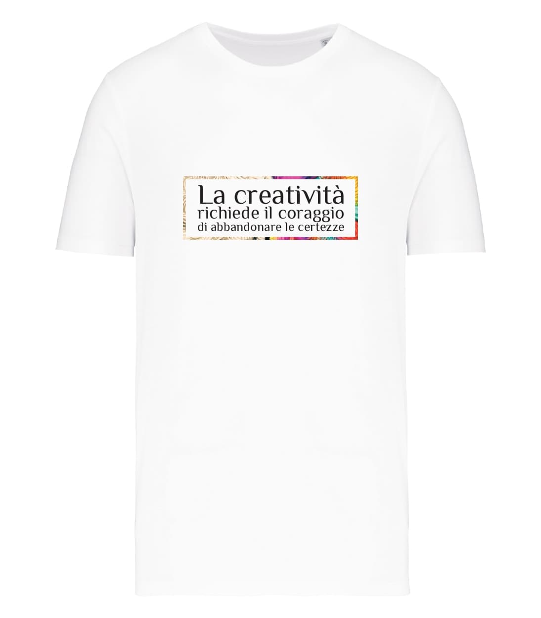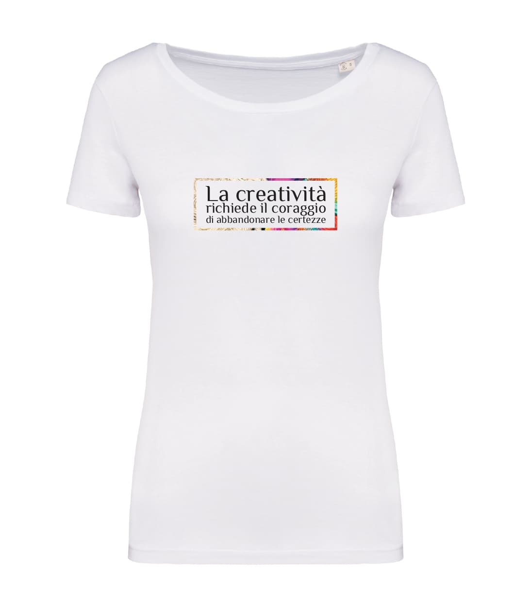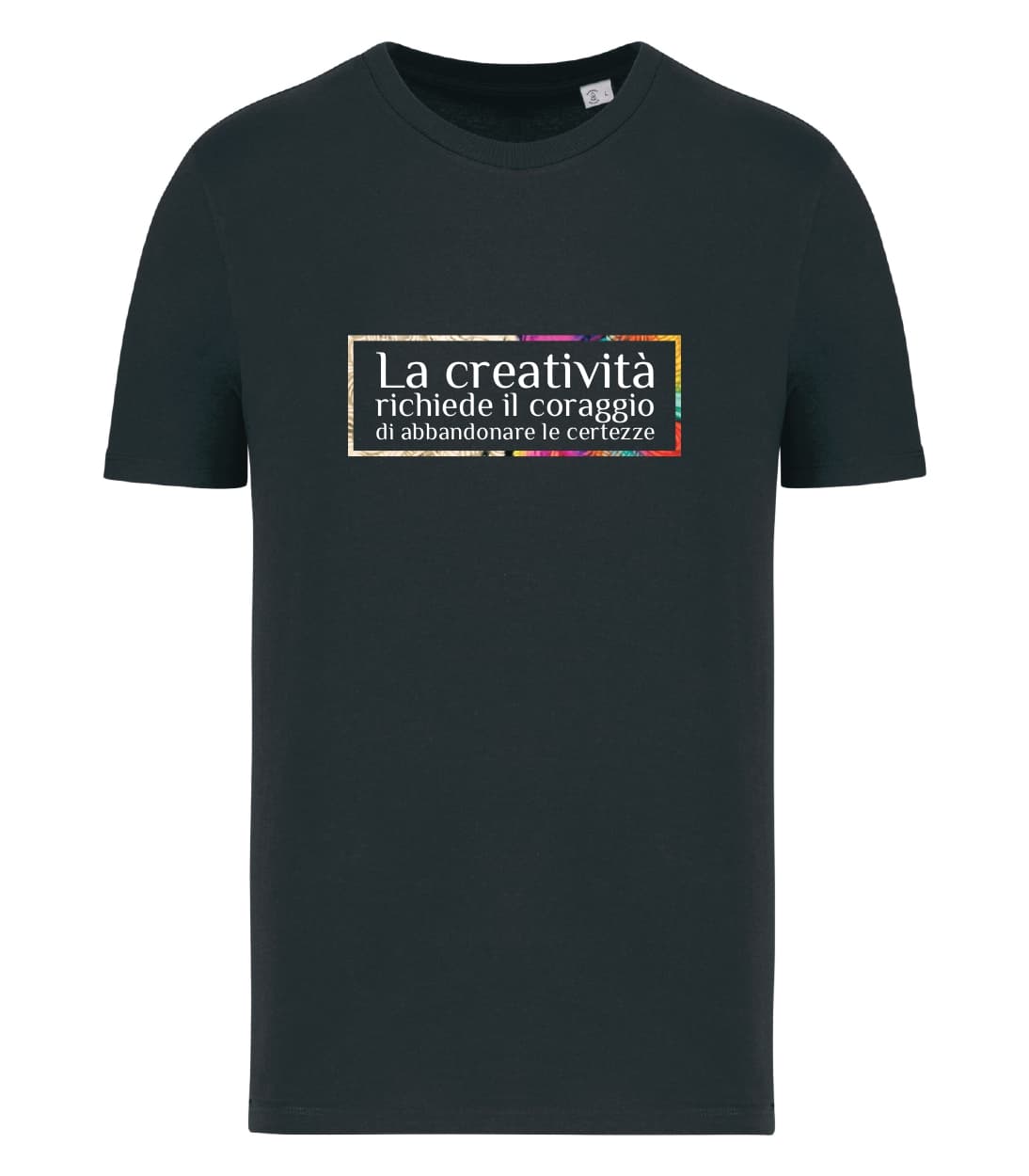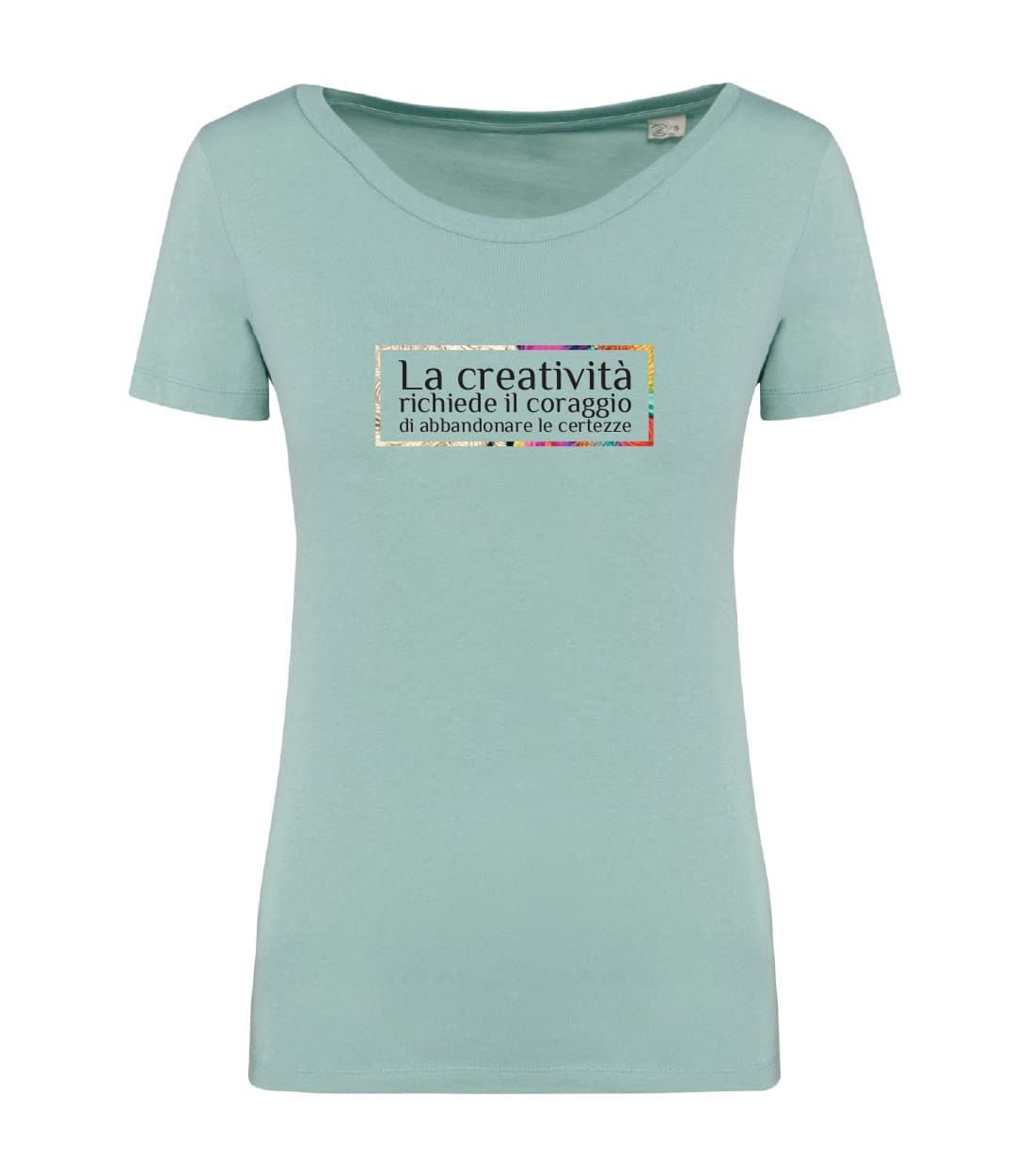 100% cotone biologico pettinato. Taglio aderente. Cuciture laterali. Capo con lavaggio agli enzimi. Collo a costine 1 x 1. Nastrino di rinforzo nel tessuto principale all’interno del collo. Finitura a doppia impuntura a fondo manica e fondo capo. Certificato STANDARD 100 by OEKO-TEX®N°CQ1007/7, IFTH