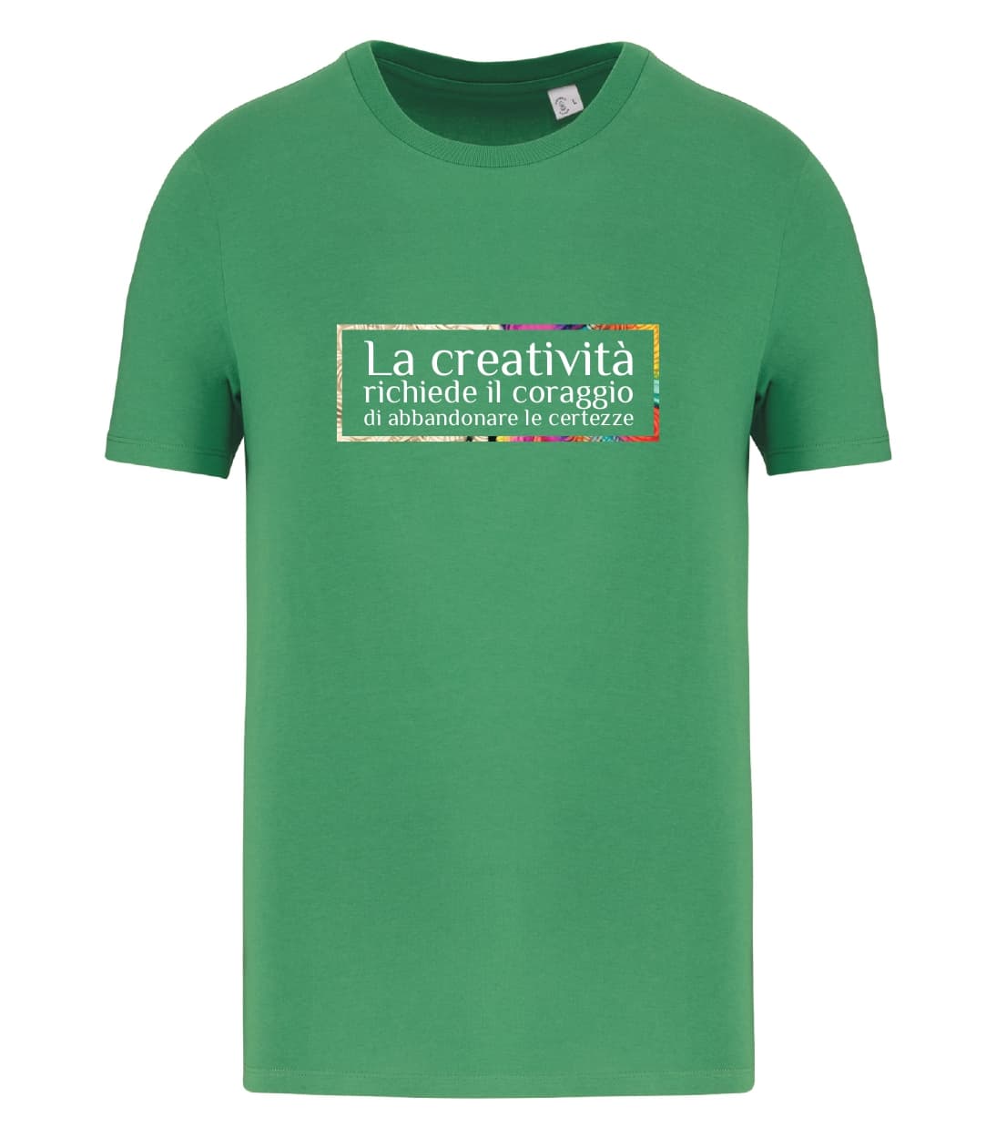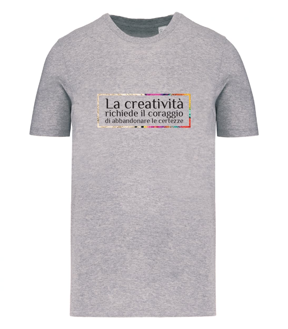 100% cotone biologico pettinato. Taglio aderente. Cuciture laterali. Capo con lavaggio agli enzimi. Finitura a doppia impuntura a fondo manica e fondo capo. Collo a costine 1 x 1. Nastrino di rinforzo in jersey tono su tono nel collo. Certificato STANDARD 100 by OEKO-TEX®N°CQ1007/7, IFTH