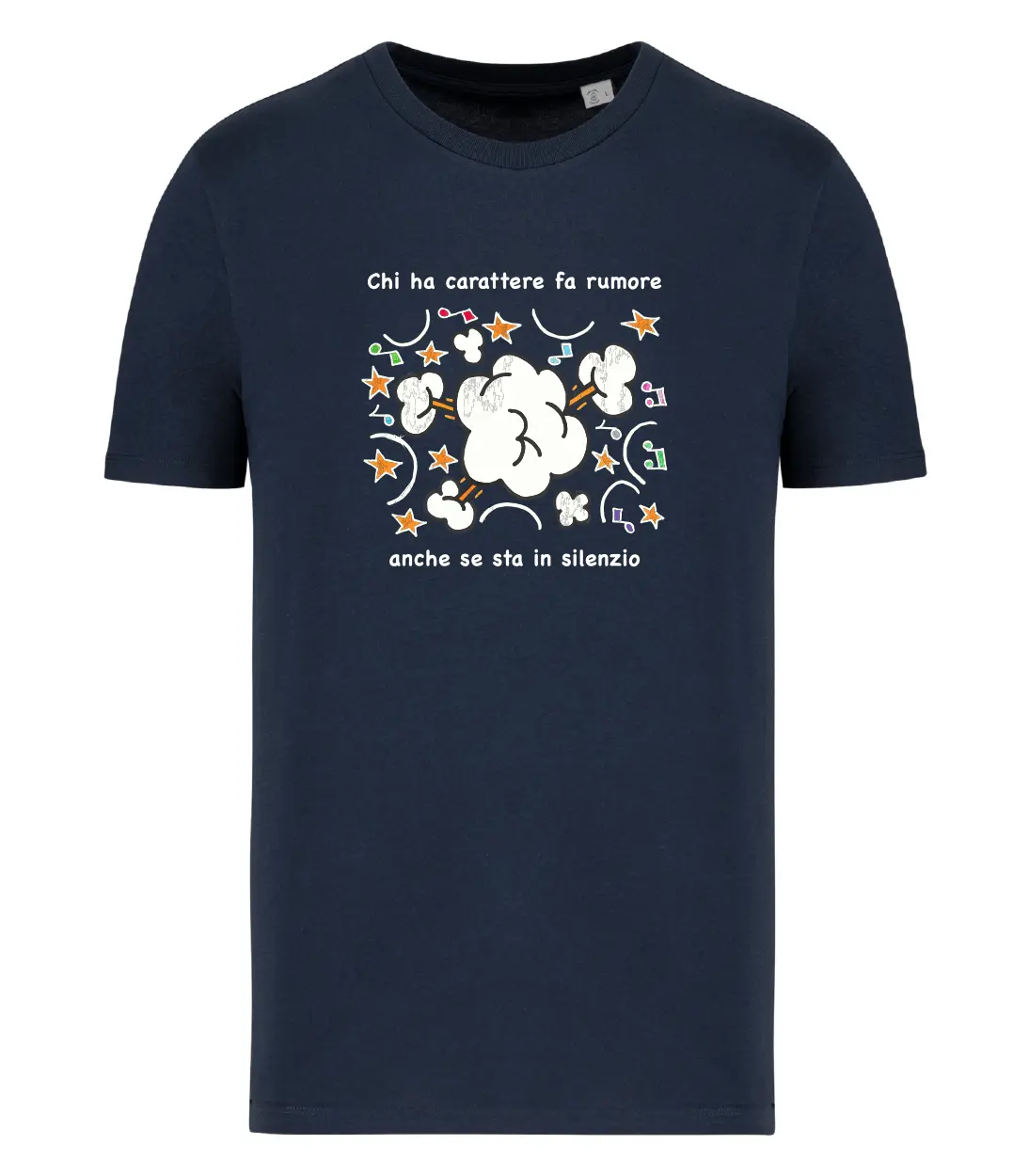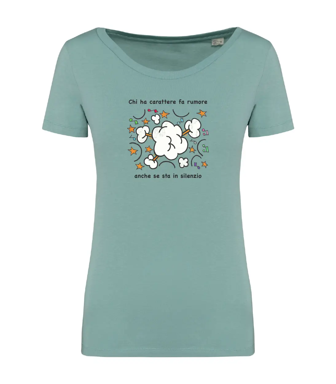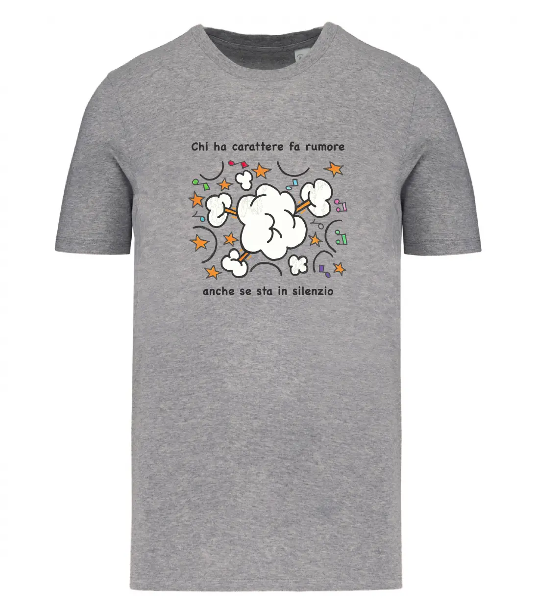100% cotone biologico pettinato. Taglio aderente. Cuciture laterali. Capo con lavaggio agli enzimi. Collo a costine 1 x 1. Nastrino di rinforzo nel tessuto principale all’interno del collo. Finitura a doppia impuntura a fondo manica e fondo capo. Certificato STANDARD 100 by OEKO-TEX®N°CQ1007/7, IFTH