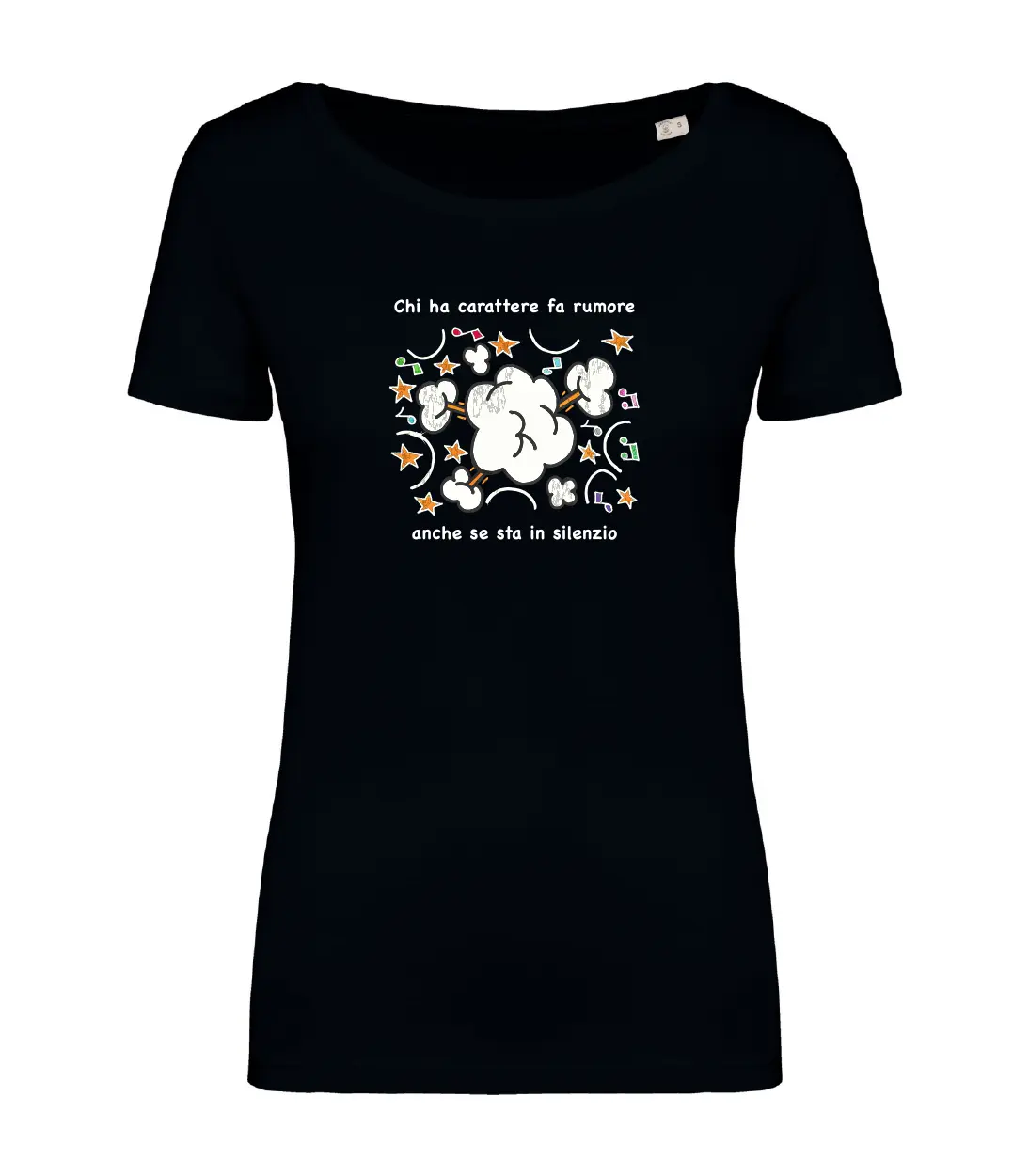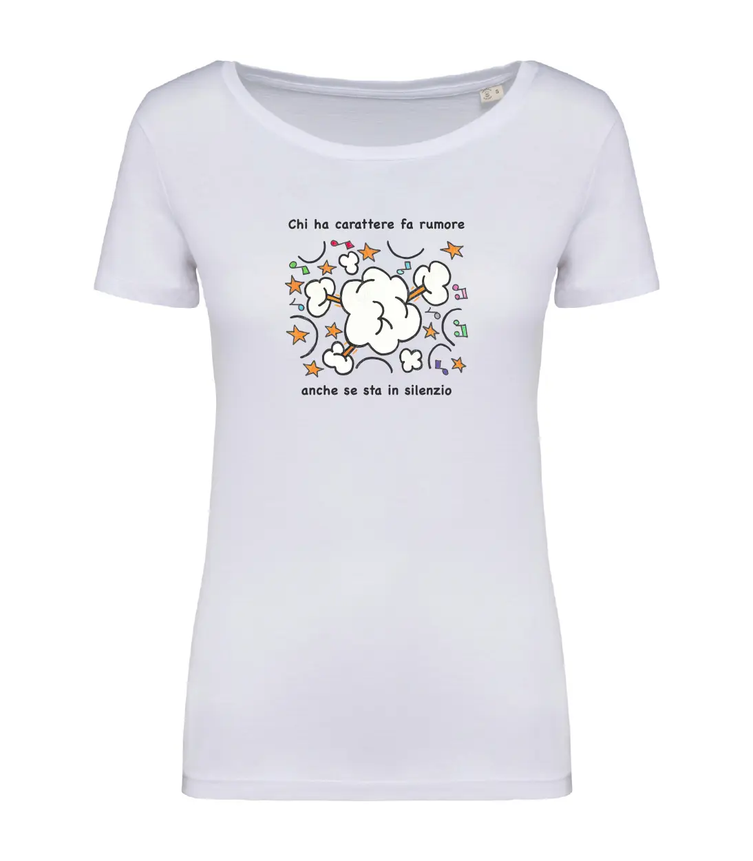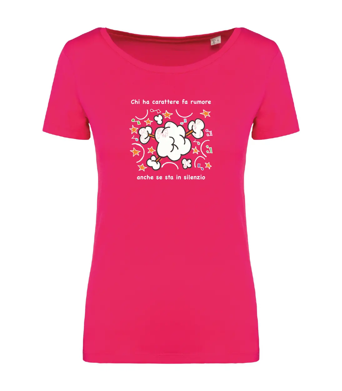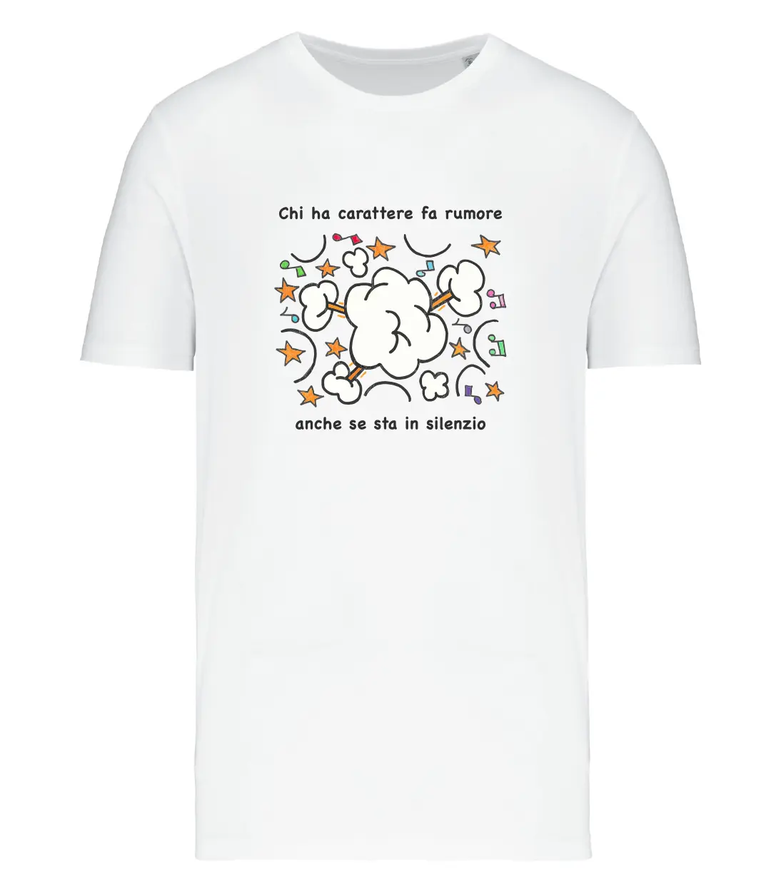 100% cotone biologico pettinato. Taglio aderente. Cuciture laterali. Capo con lavaggio agli enzimi. Collo a costine 1 x 1. Nastrino di rinforzo nel tessuto principale all’interno del collo. Finitura a doppia impuntura a fondo manica e fondo capo. Certificato STANDARD 100 by OEKO-TEX®N°CQ1007/7, IFTH
