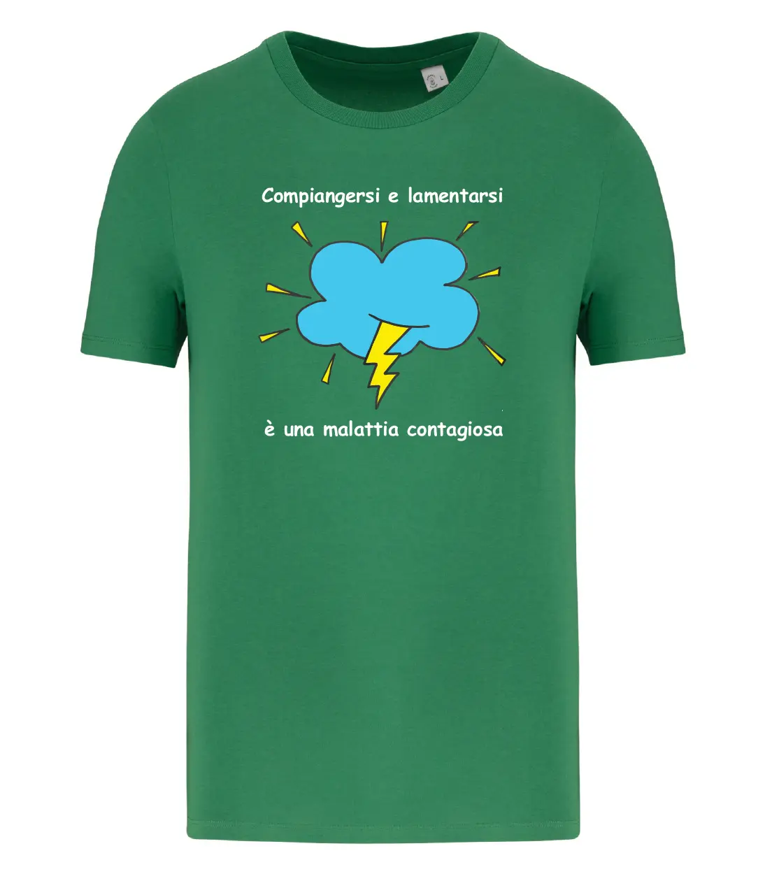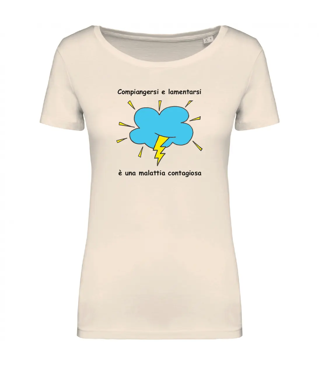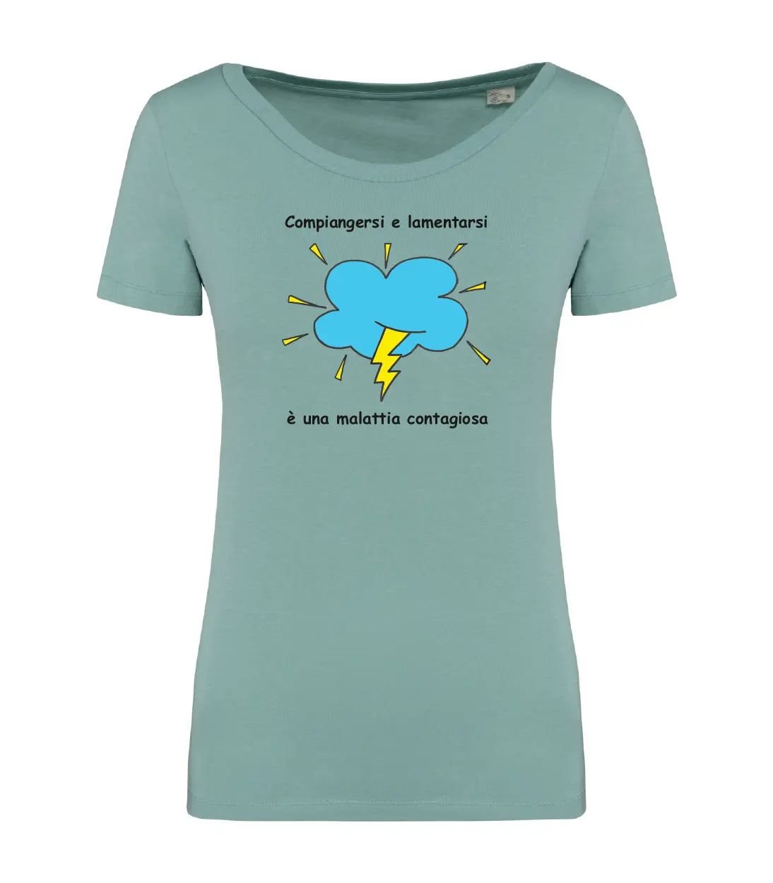 100% cotone biologico pettinato. Taglio aderente. Cuciture laterali. Capo con lavaggio agli enzimi. Finitura a doppia impuntura a fondo manica e fondo capo. Collo a costine 1 x 1. Nastrino di rinforzo in jersey tono su tono nel collo. Certificato STANDARD 100 by OEKO-TEX®N°CQ1007/7, IFTH