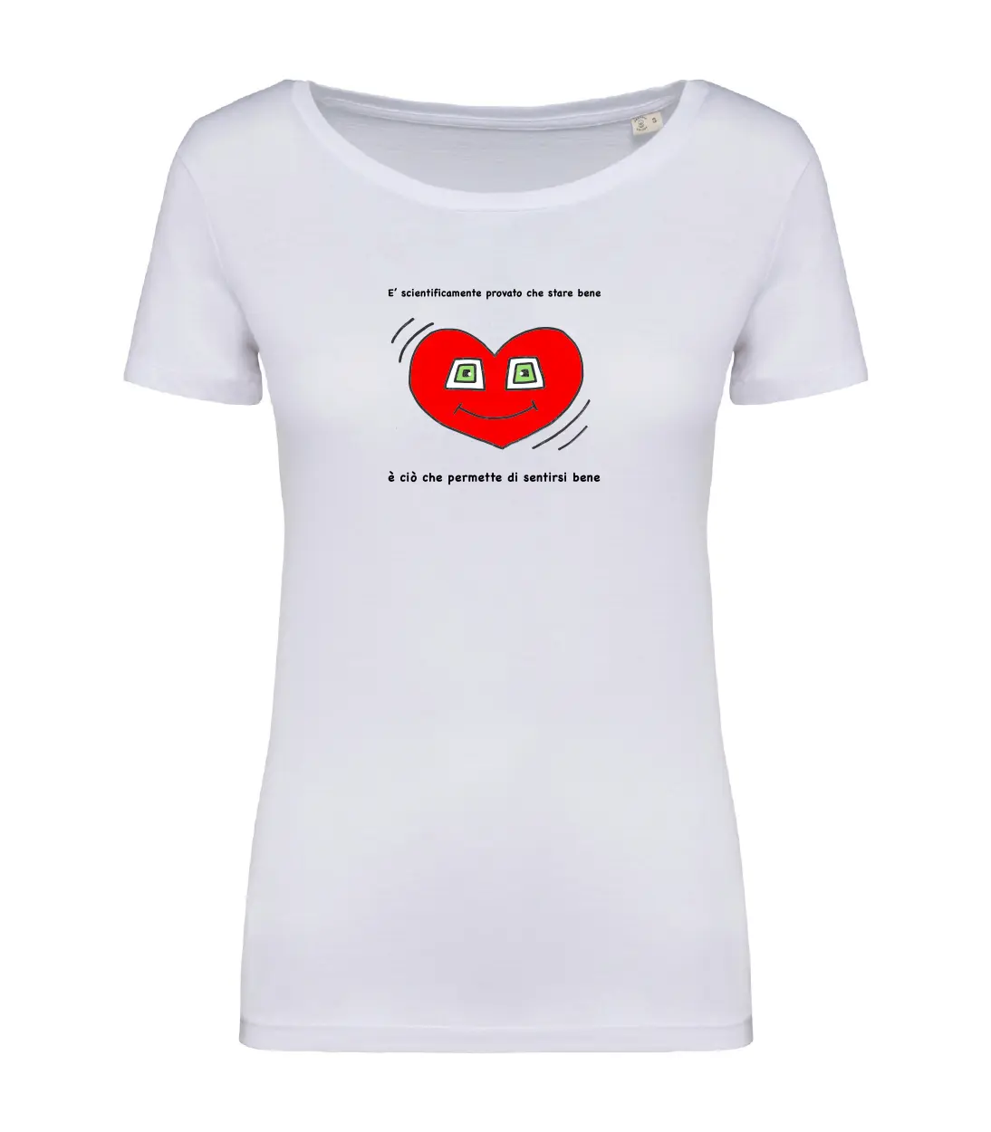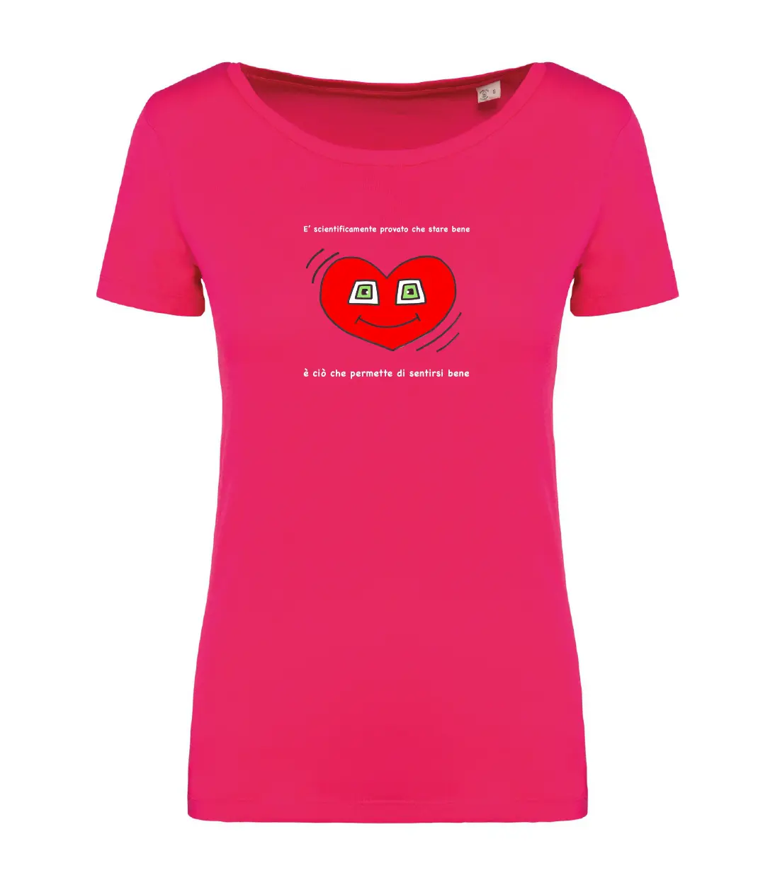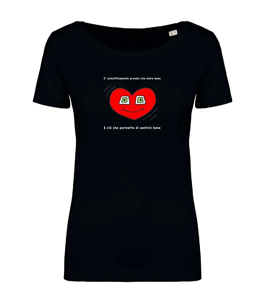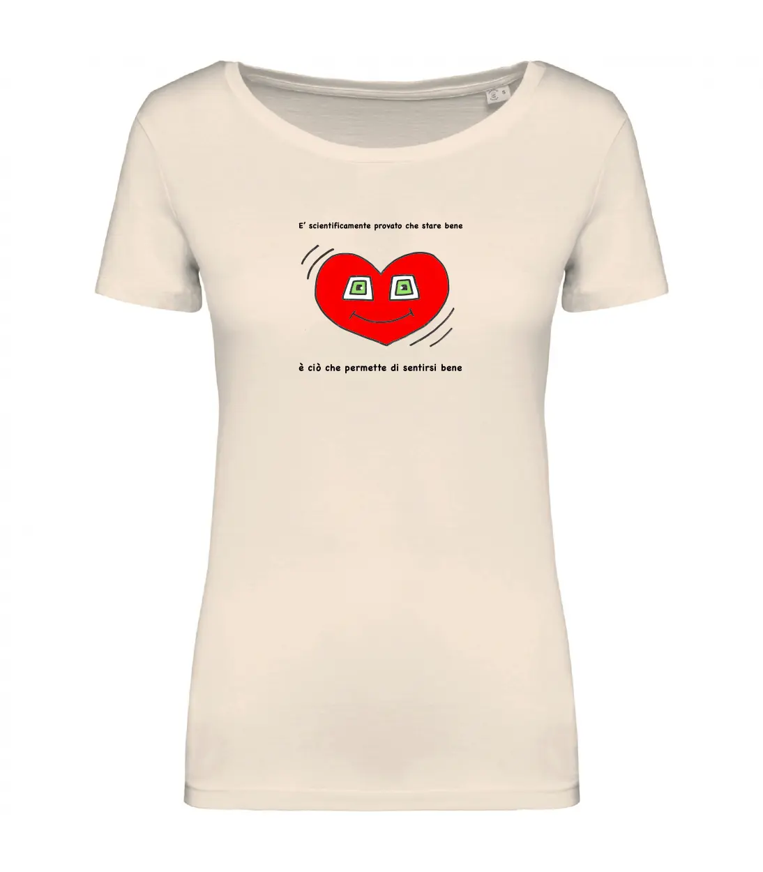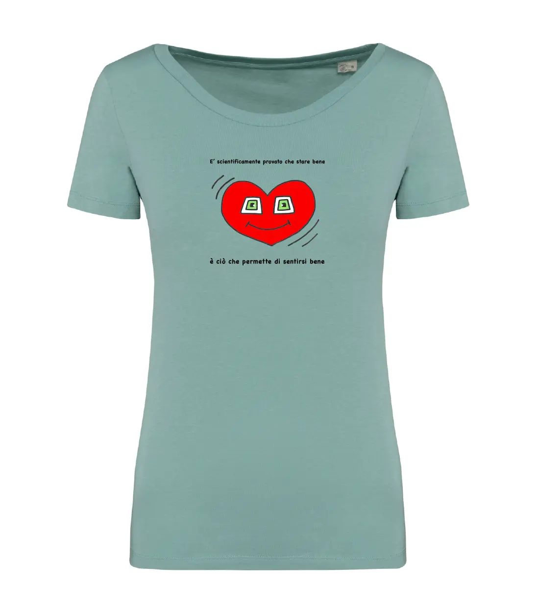 100% cotone biologico pettinato. Taglio aderente. Cuciture laterali. Capo con lavaggio agli enzimi. Collo a costine 1 x 1. Nastrino di rinforzo nel tessuto principale all’interno del collo. Finitura a doppia impuntura a fondo manica e fondo capo. Certificato STANDARD 100 by OEKO-TEX®N°CQ1007/7, IFTH