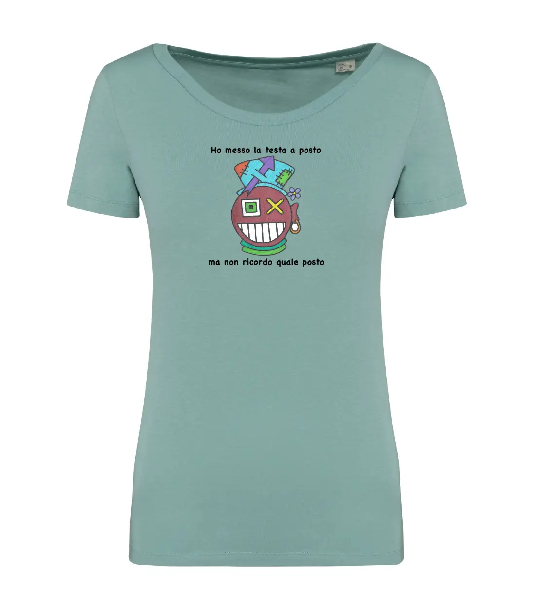 100% cotone biologico pettinato. Taglio aderente. Cuciture laterali. Capo con lavaggio agli enzimi. Collo a costine 1 x 1. Nastrino di rinforzo nel tessuto principale all’interno del collo. Finitura a doppia impuntura a fondo manica e fondo capo. Certificato STANDARD 100 by OEKO-TEX®N°CQ1007/7, IFTH