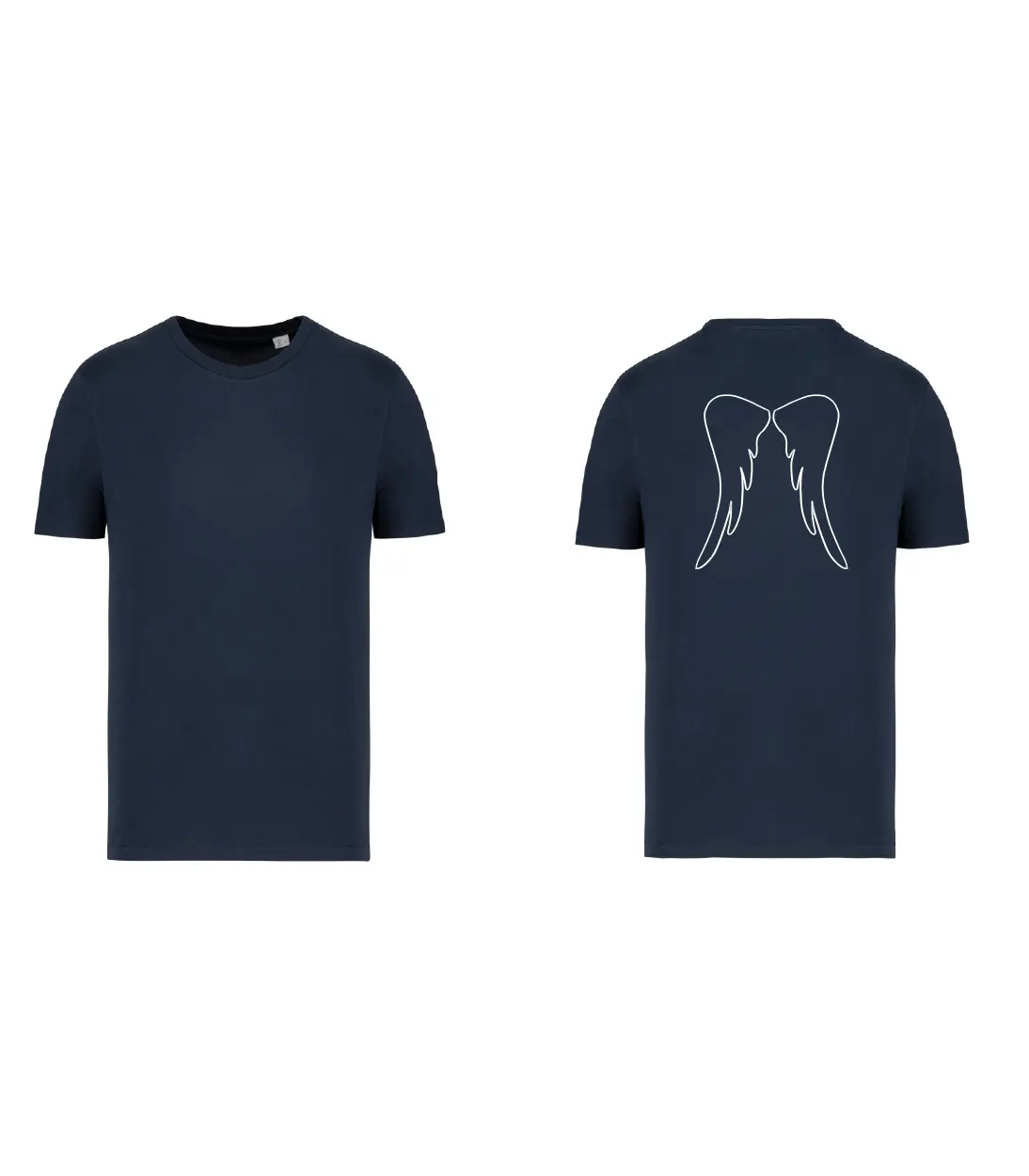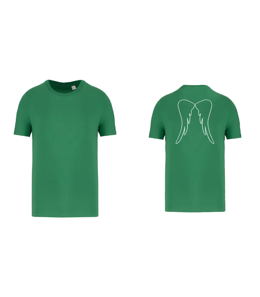100% cotone biologico pettinato. Taglio aderente. Cuciture laterali. Capo con lavaggio agli enzimi. Finitura a doppia impuntura a fondo manica e fondo capo. Collo a costine 1 x 1. Nastrino di rinforzo in jersey tono su tono nel collo. Certificato STANDARD 100 by OEKO-TEX®N°CQ1007/7, IFTH