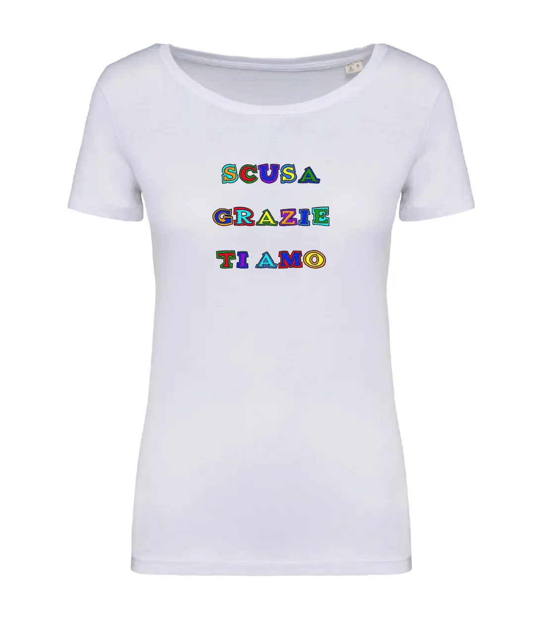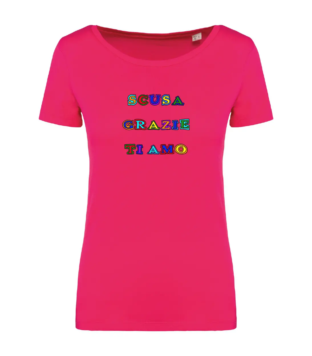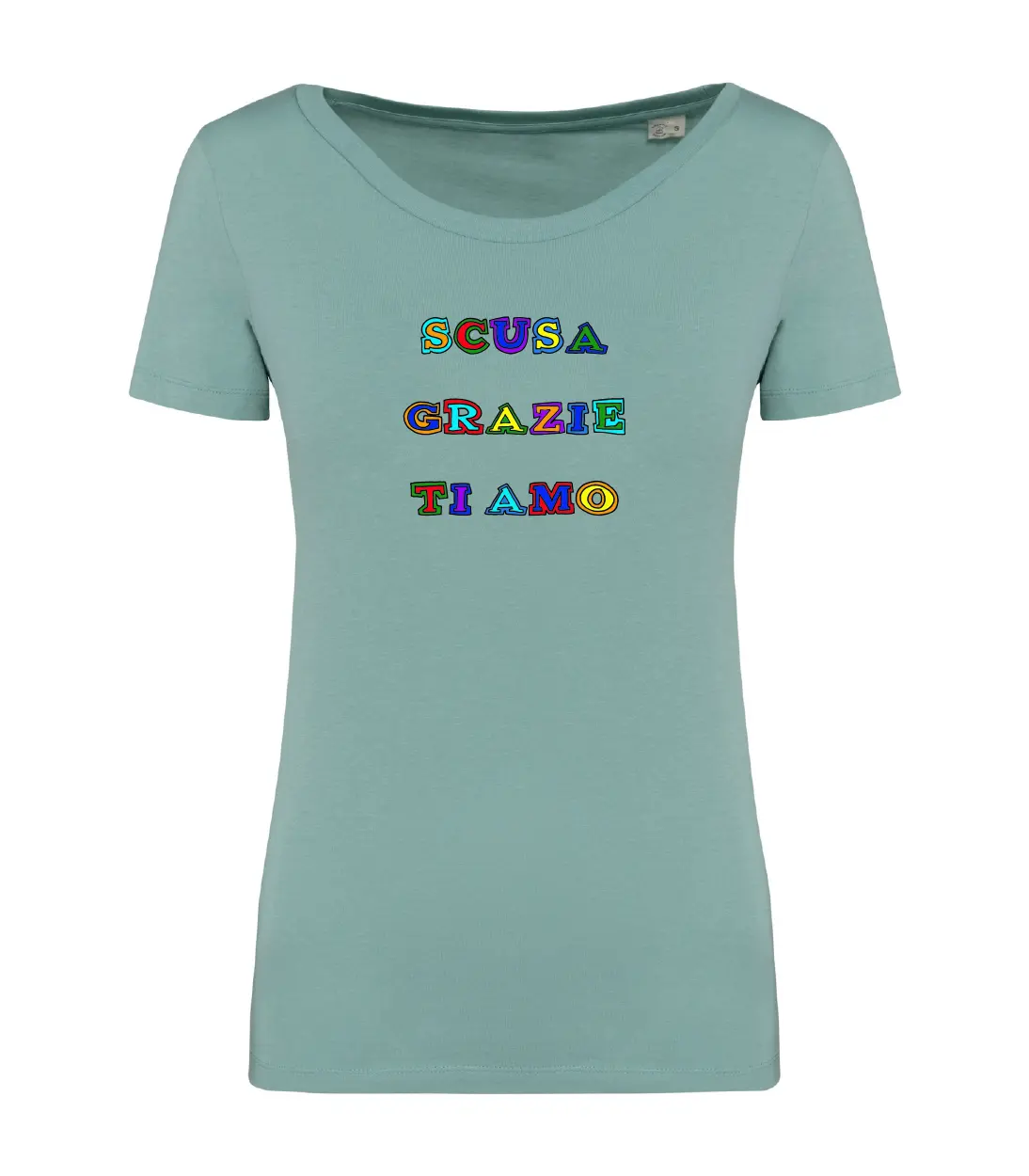 100% cotone biologico pettinato. Taglio aderente. Cuciture laterali. Capo con lavaggio agli enzimi. Collo a costine 1 x 1. Nastrino di rinforzo nel tessuto principale all’interno del collo. Finitura a doppia impuntura a fondo manica e fondo capo. Certificato STANDARD 100 by OEKO-TEX®N°CQ1007/7, IFTH
