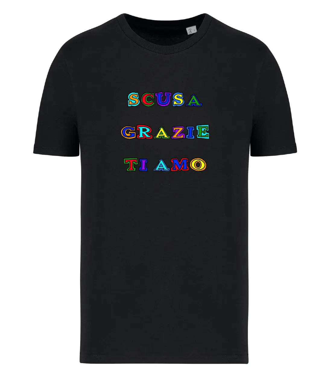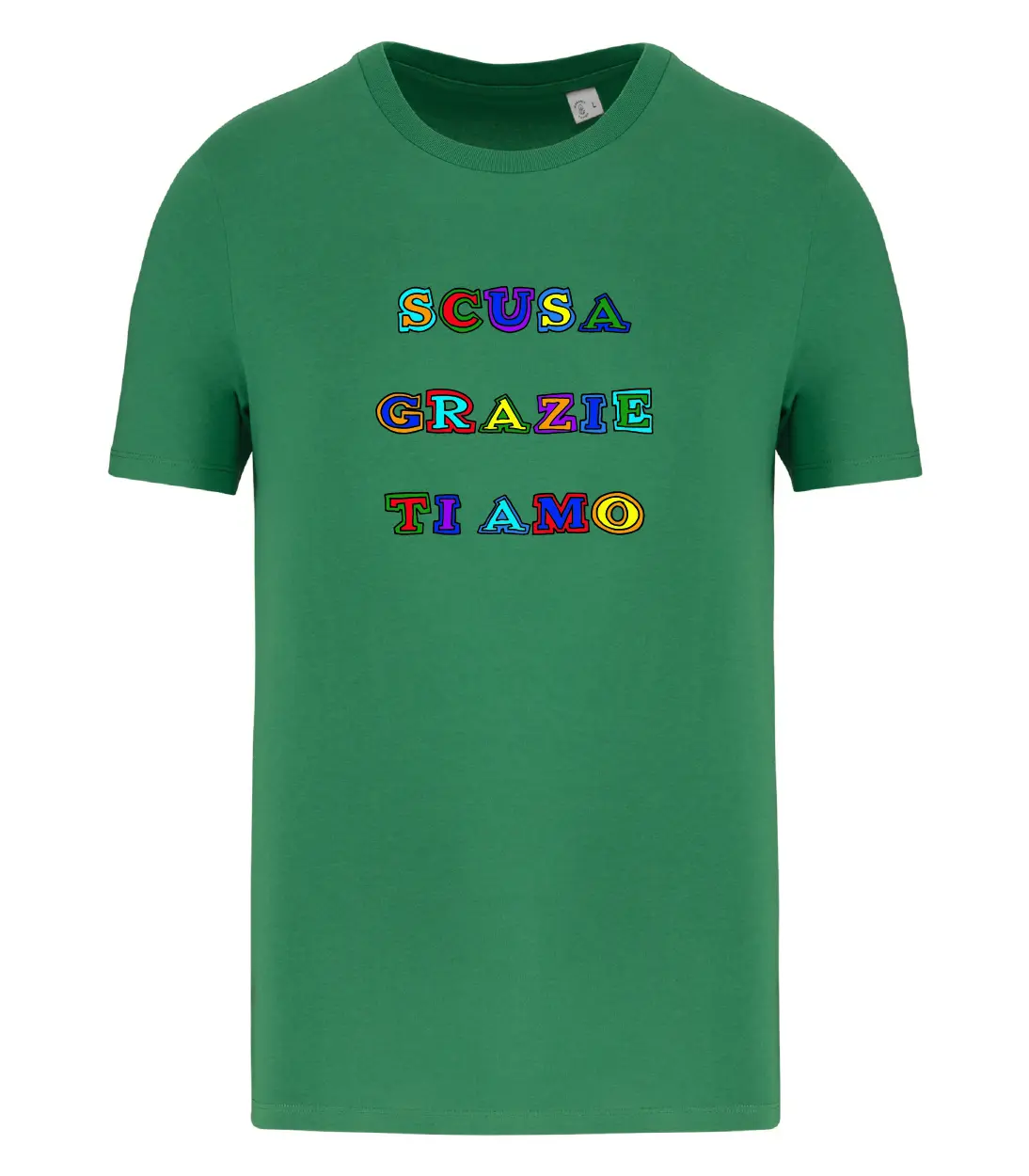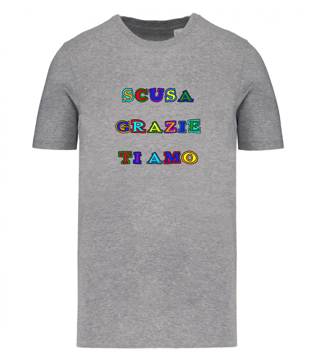 100% cotone biologico pettinato. Taglio aderente. Cuciture laterali. Capo con lavaggio agli enzimi. Finitura a doppia impuntura a fondo manica e fondo capo. Collo a costine 1 x 1. Nastrino di rinforzo in jersey tono su tono nel collo. Certificato STANDARD 100 by OEKO-TEX®N°CQ1007/7, IFTH