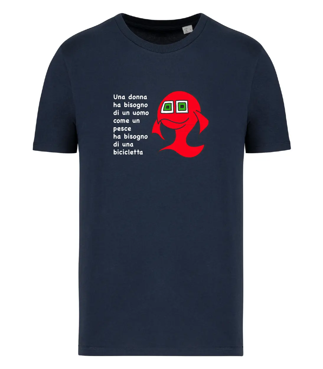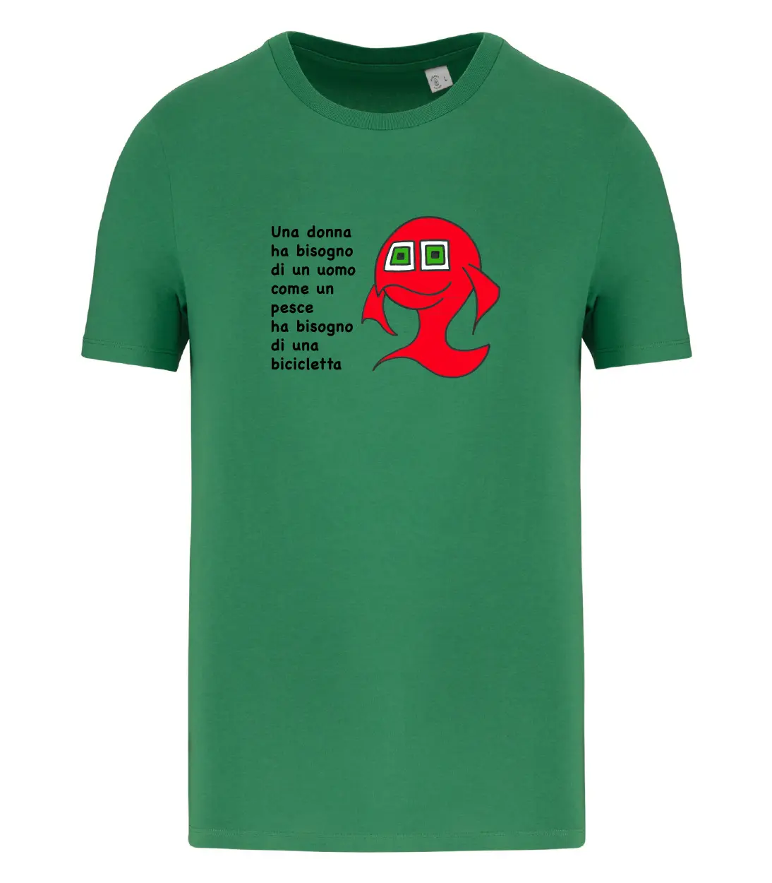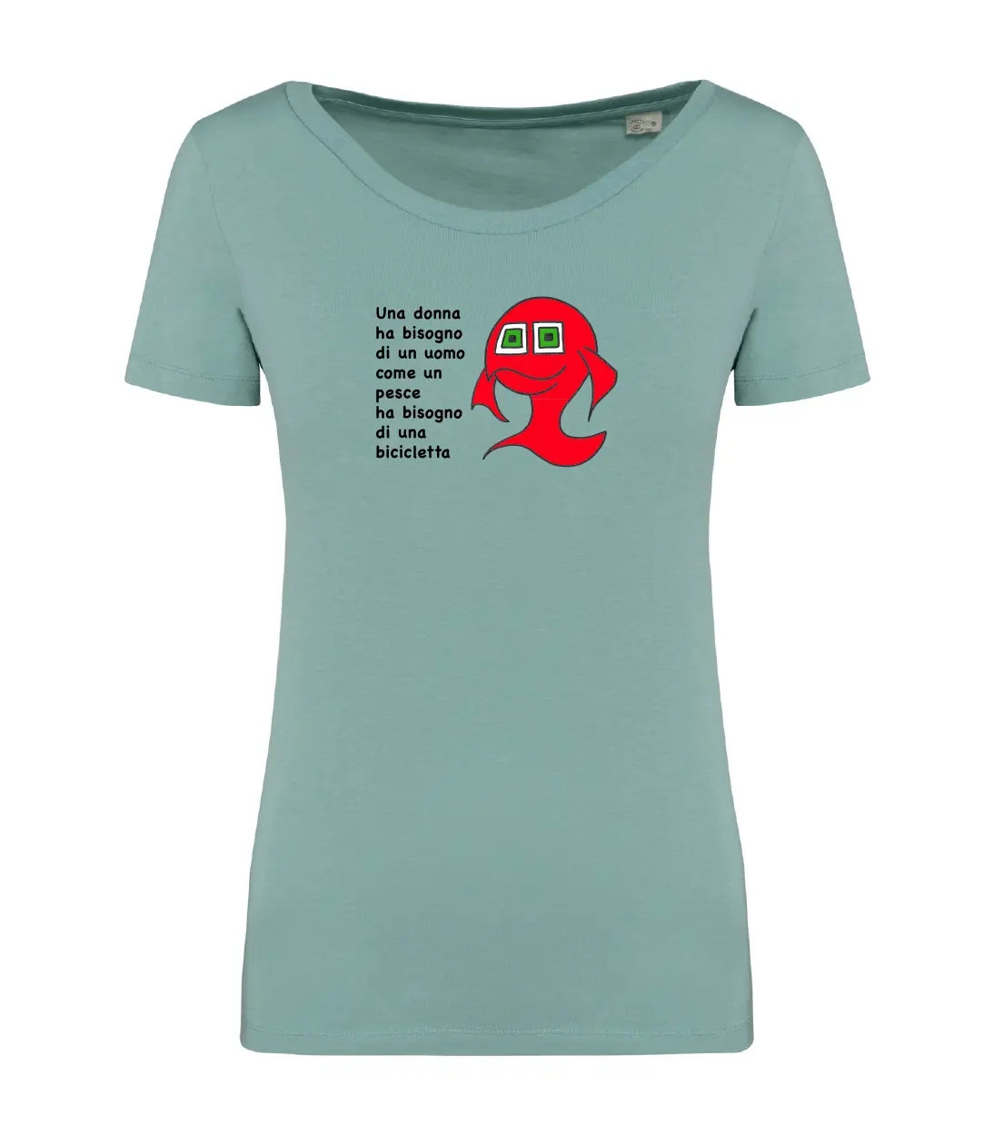 100% cotone biologico pettinato. Taglio aderente. Cuciture laterali. Capo con lavaggio agli enzimi. Collo a costine 1 x 1. Nastrino di rinforzo nel tessuto principale all’interno del collo. Finitura a doppia impuntura a fondo manica e fondo capo. Certificato STANDARD 100 by OEKO-TEX®N°CQ1007/7, IFTH