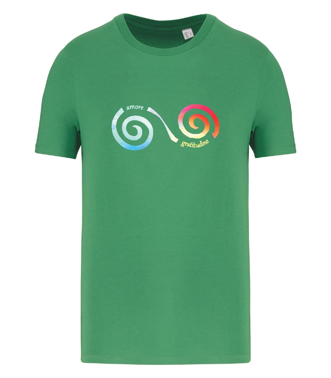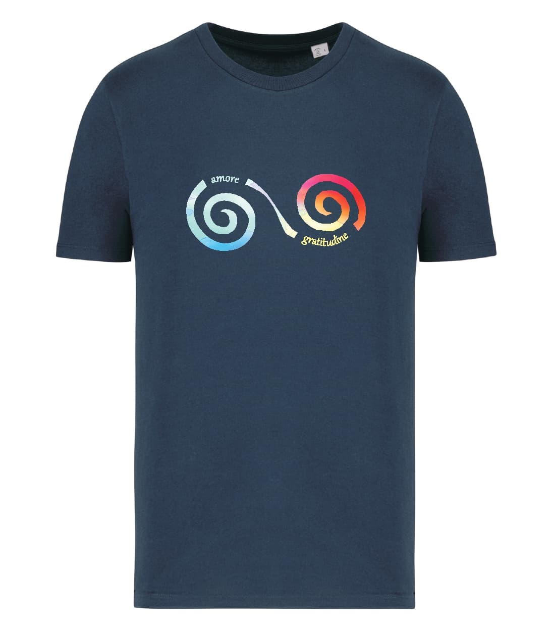 100% cotone biologico pettinato. Taglio aderente. Cuciture laterali. Capo con lavaggio agli enzimi. Finitura a doppia impuntura a fondo manica e fondo capo. Collo a costine 1 x 1. Nastrino di rinforzo in jersey tono su tono nel collo. Certificato STANDARD 100 by OEKO-TEX®N°CQ1007/7, IFTH