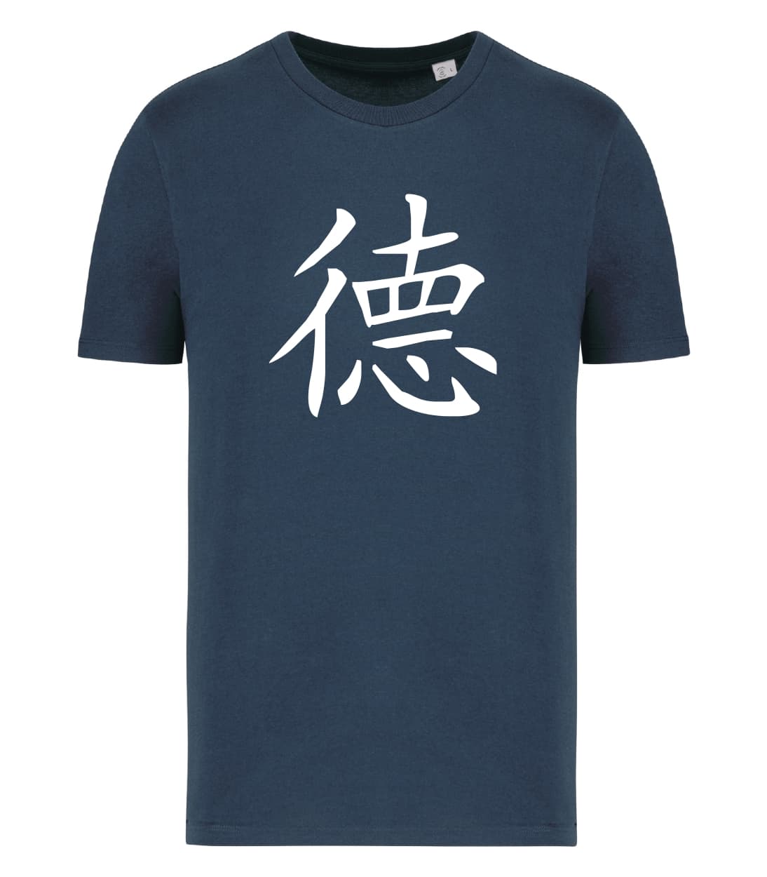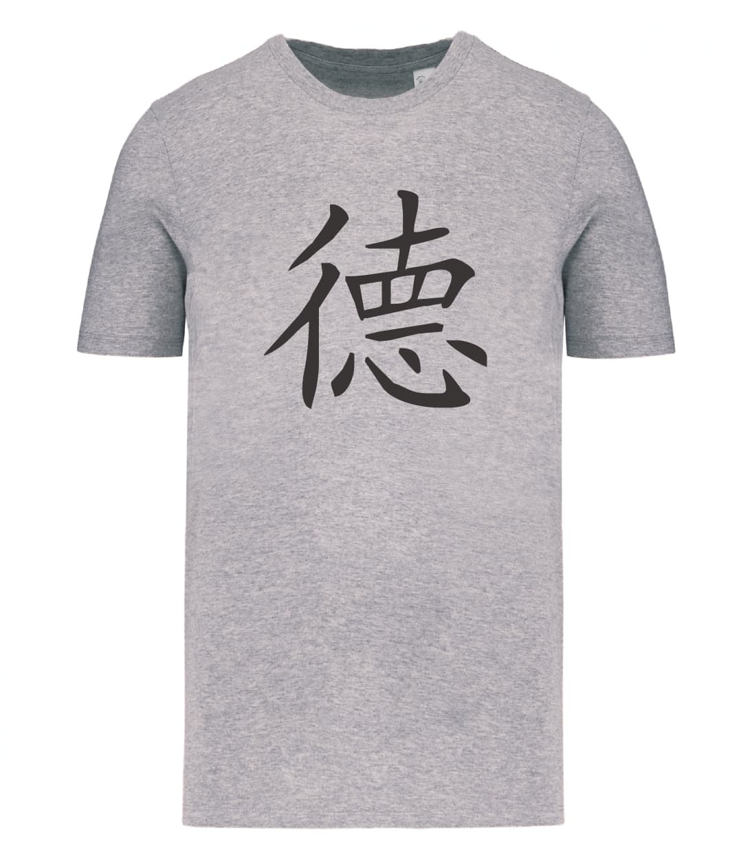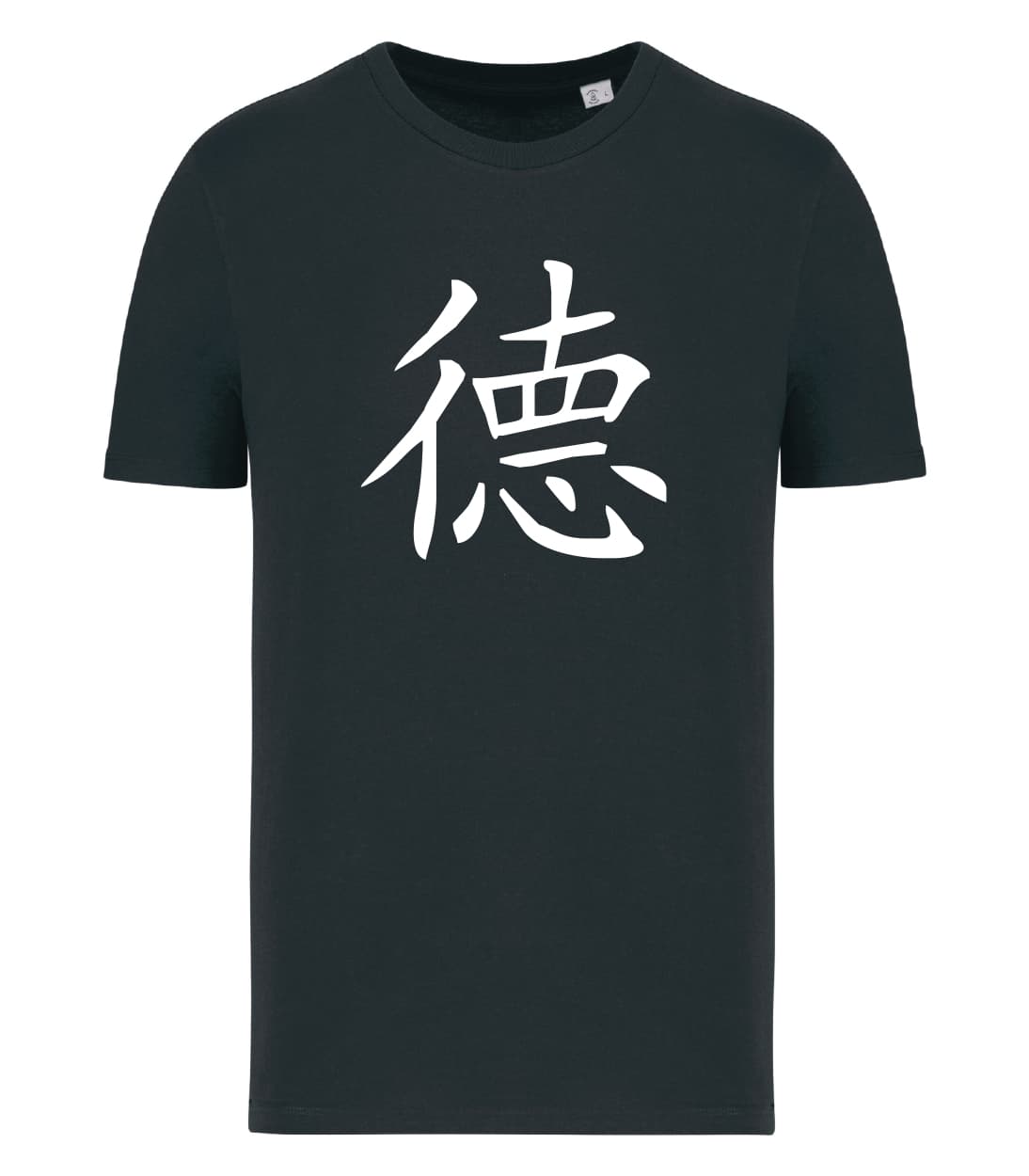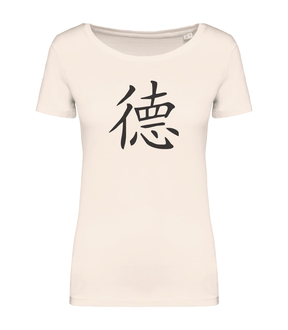 Il simbolo cinese della virtù combina due ideogrammi: 彳e 悳 . La componente 彳 significa “camminare” o “viaggiare”, ma può essere anche intesa come “comportamento”. La componente 悳 è a sua volta formata da 直 (zhí), cioè “dritto”, e 心 (xīn) cioè “cuore”. Da questa unione deriva il significato di “camminare dritti con il cuore”, cioè di comportarsi in maniera virtuosa.