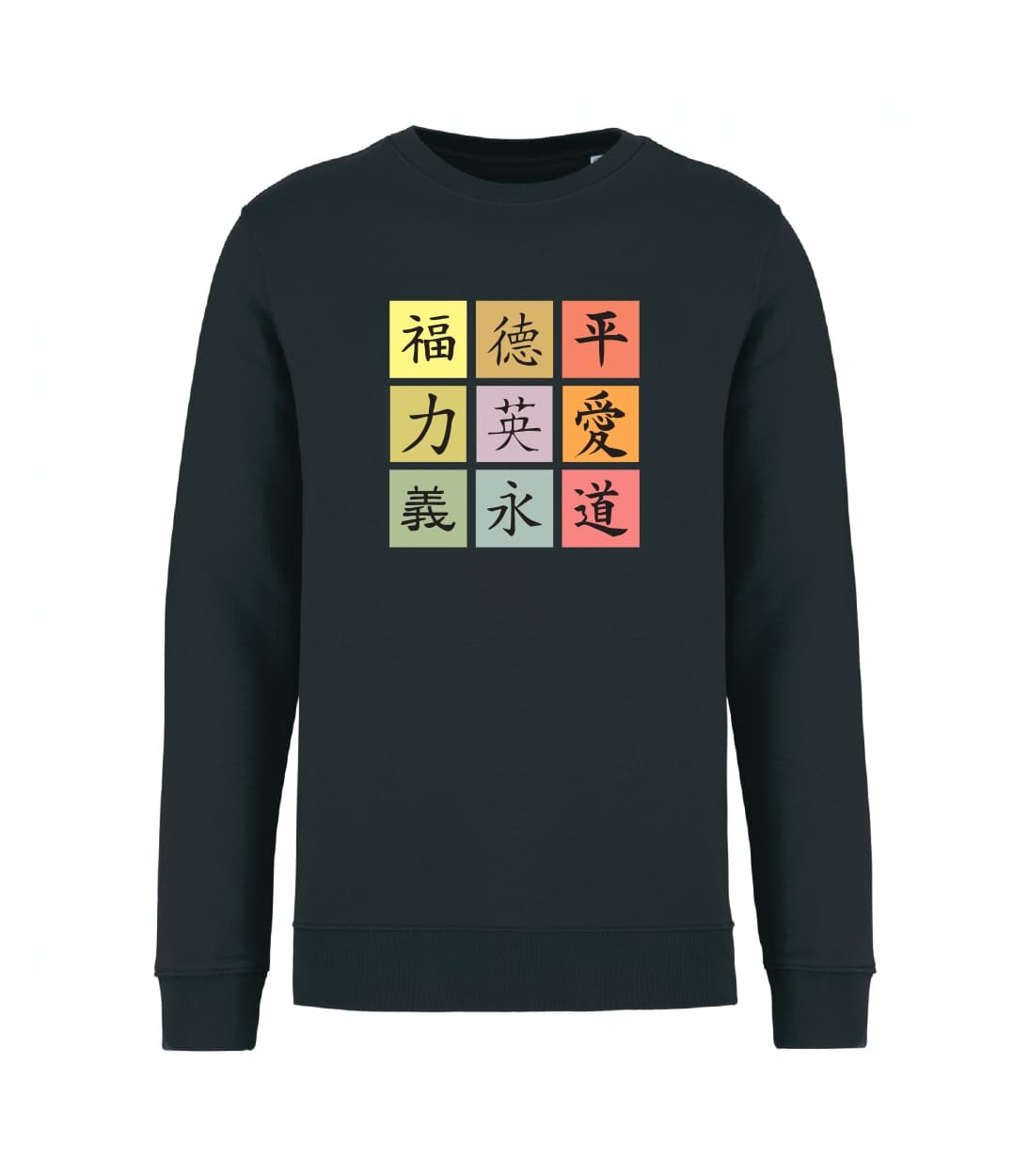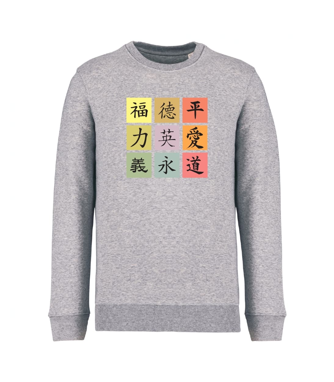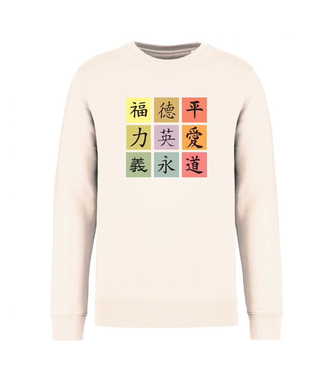 85% cotone biologico pettinato 15% poliestere riciclato Felpa garzata a 3 fili preristretta. Mezzaluna sulla schiena. Costine 1 x 1 su collo, fondo capo e fondo manica. Doppia impuntura su fondo manica, giromanica e fondo capo. Impuntura semplice sul collo. Nastrino di rinforzo sull’interno del collo dietro. Certificato STANDARD 100 by OEKO-TEX®N°CQ1007/7, IFTH