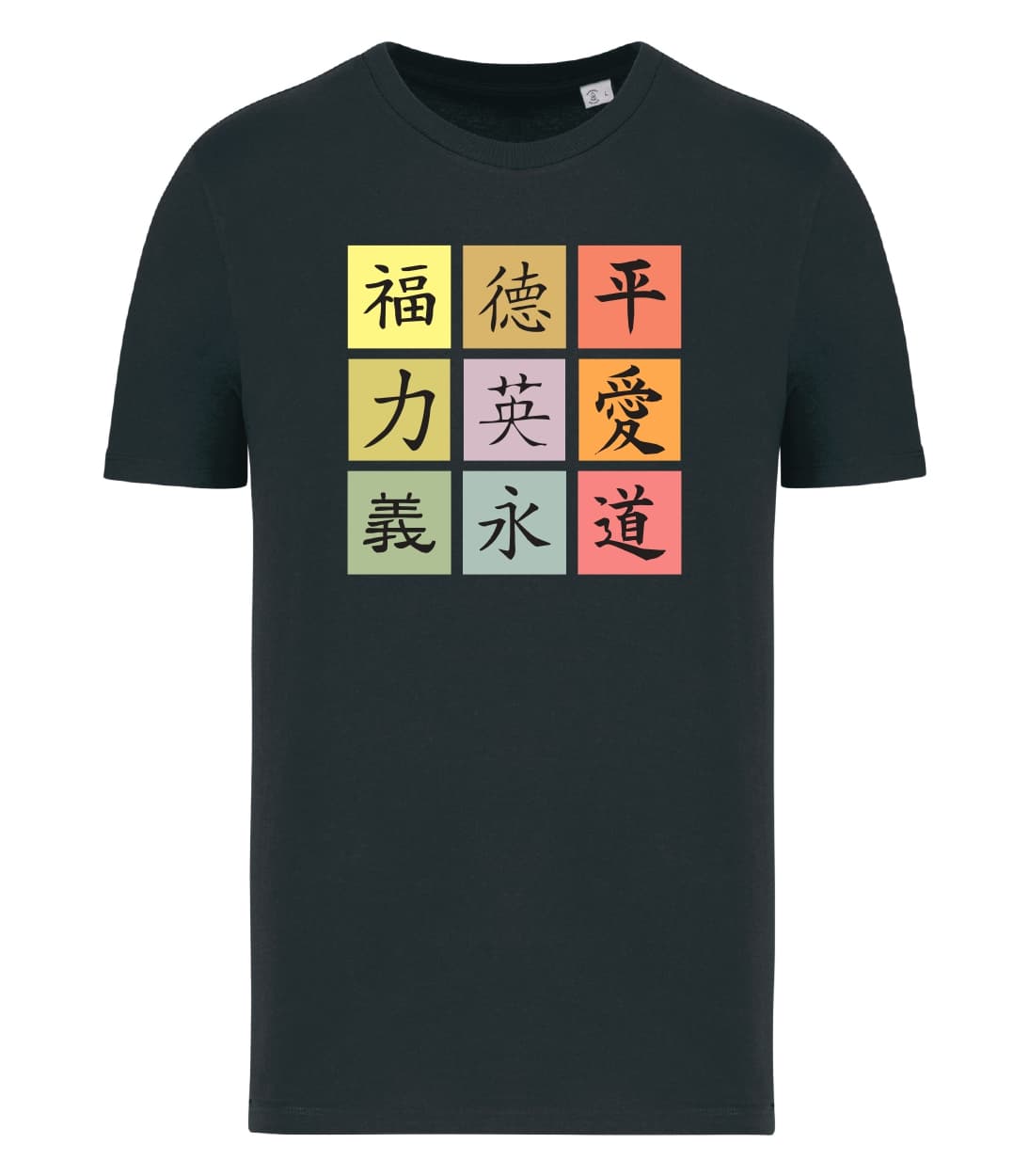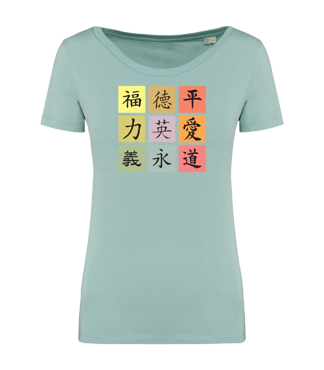100% cotone biologico pettinato. Taglio aderente. Cuciture laterali. Capo con lavaggio agli enzimi. Collo a costine 1 x 1. Nastrino di rinforzo nel tessuto principale all’interno del collo. Finitura a doppia impuntura a fondo manica e fondo capo. Certificato STANDARD 100 by OEKO-TEX®N°CQ1007/7, IFTH