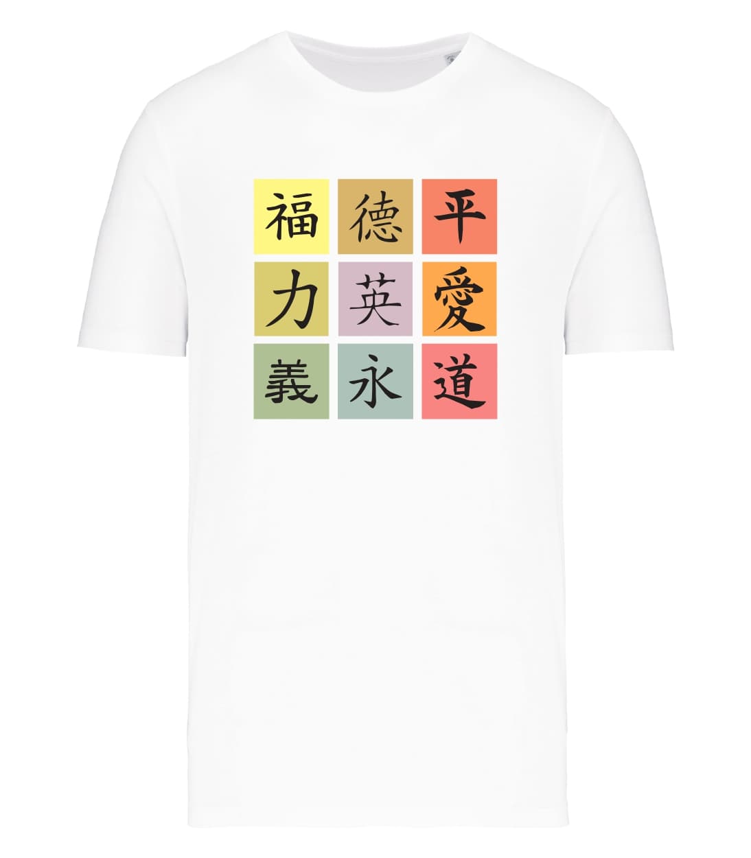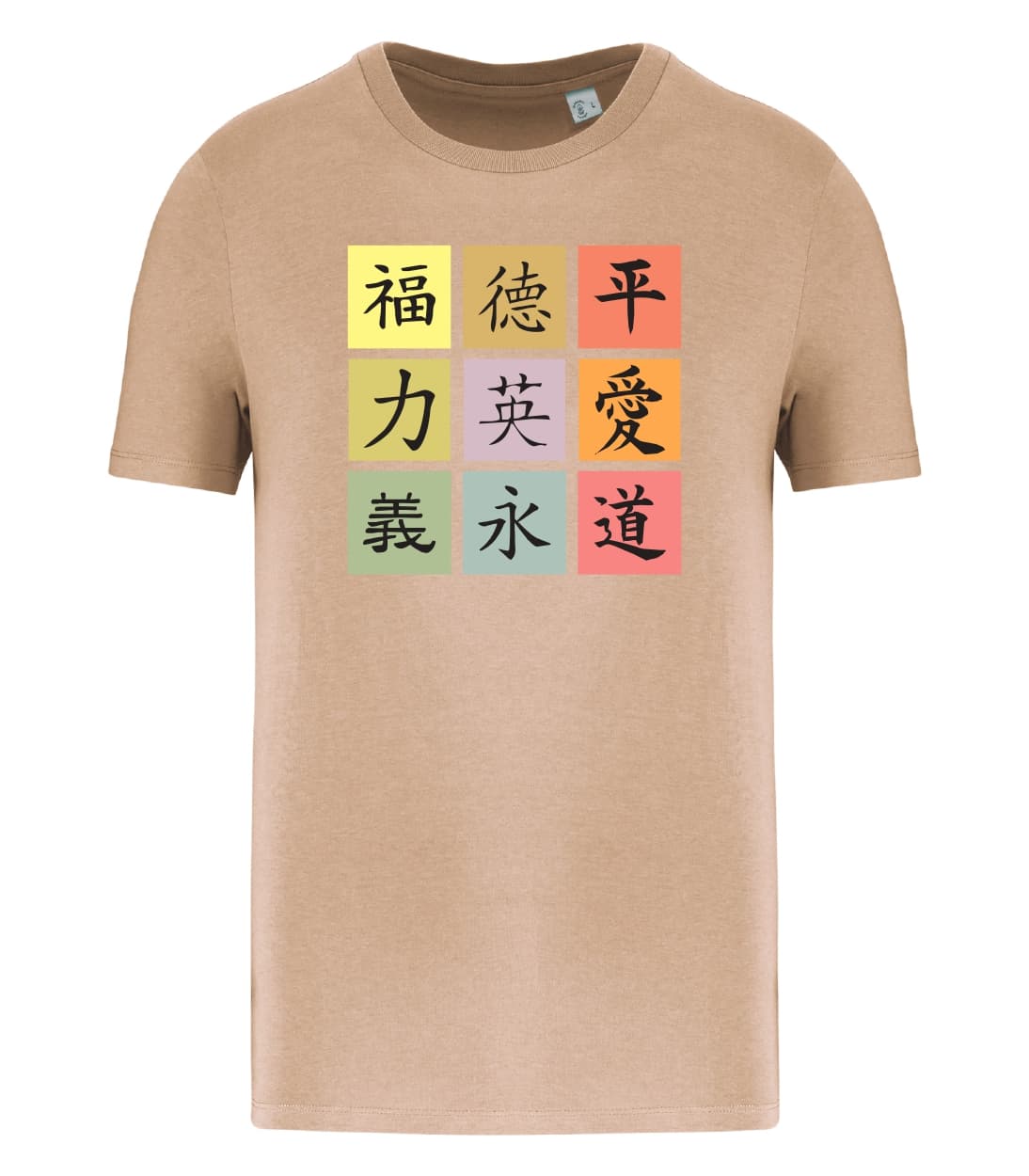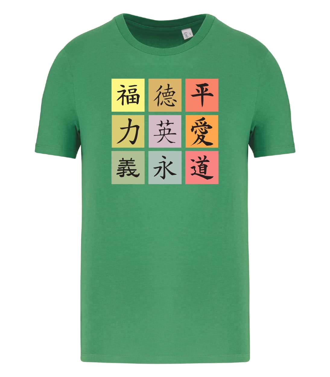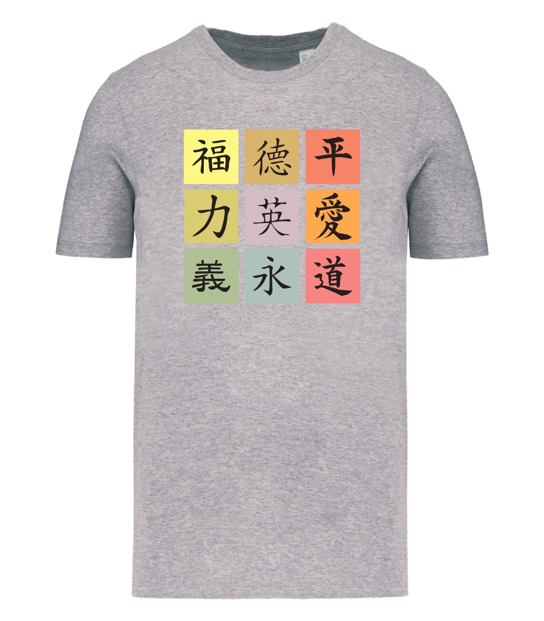 100% cotone biologico pettinato. Taglio aderente. Cuciture laterali. Capo con lavaggio agli enzimi. Finitura a doppia impuntura a fondo manica e fondo capo. Collo a costine 1 x 1. Nastrino di rinforzo in jersey tono su tono nel collo. Certificato STANDARD 100 by OEKO-TEX®N°CQ1007/7, IFTH
