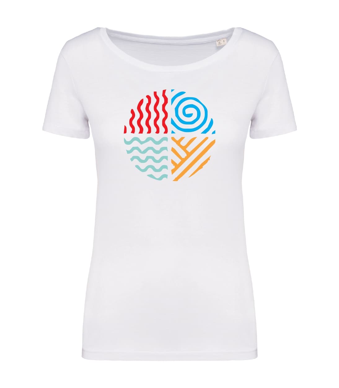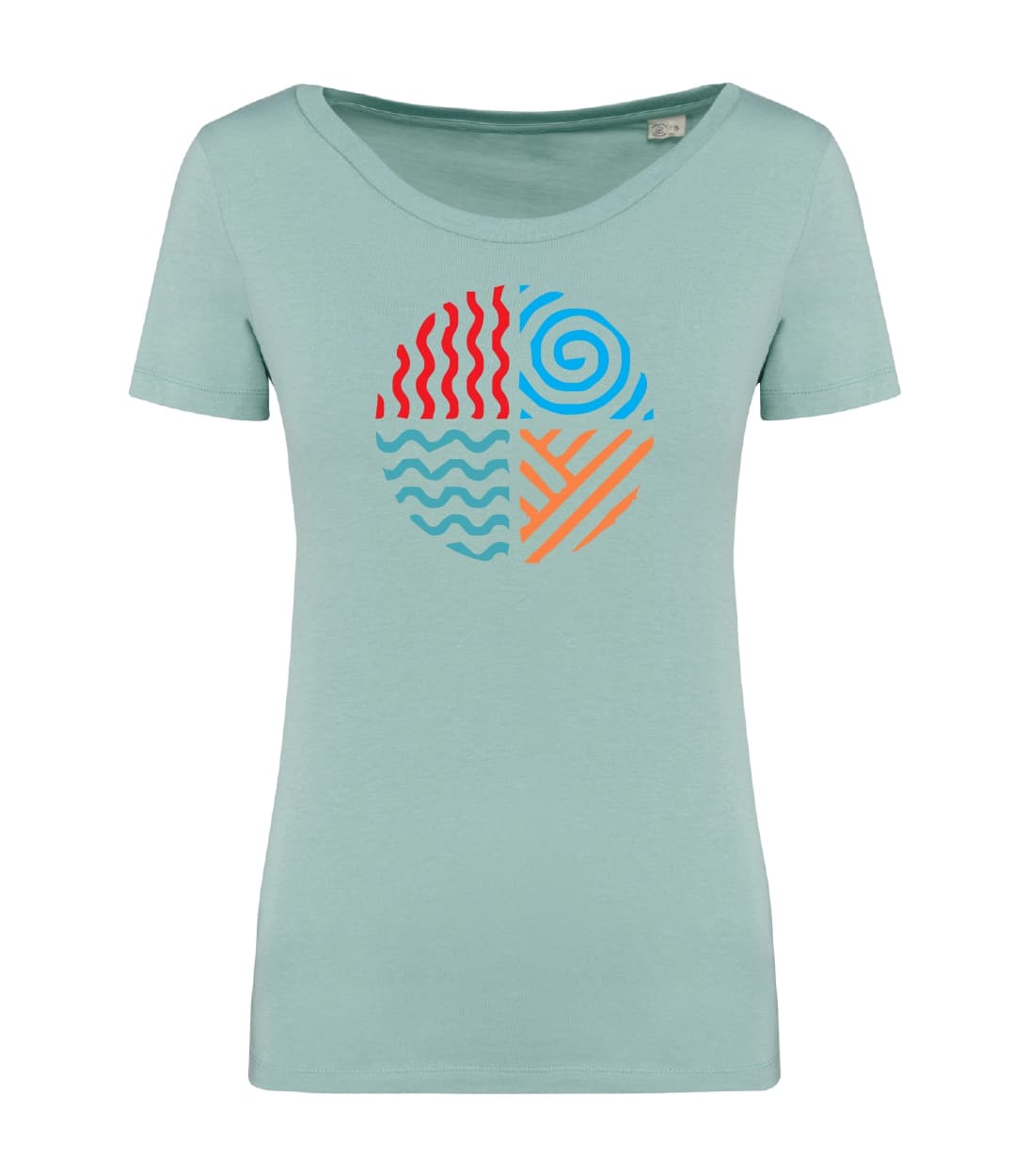100% cotone biologico pettinato. Taglio aderente. Cuciture laterali. Capo con lavaggio agli enzimi. Collo a costine 1 x 1. Nastrino di rinforzo nel tessuto principale all’interno del collo. Finitura a doppia impuntura a fondo manica e fondo capo. Certificato STANDARD 100 by OEKO-TEX®N°CQ1007/7, IFTH
