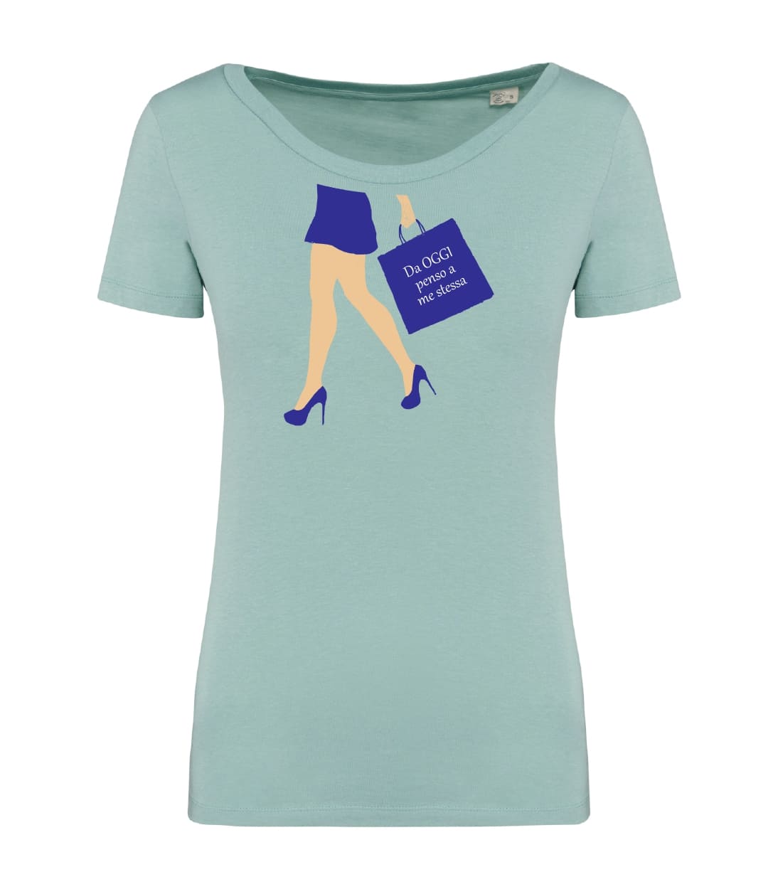 100% cotone biologico pettinato. Taglio aderente. Cuciture laterali. Capo con lavaggio agli enzimi. Collo a costine 1 x 1. Nastrino di rinforzo nel tessuto principale all’interno del collo. Finitura a doppia impuntura a fondo manica e fondo capo. Certificato STANDARD 100 by OEKO-TEX®N°CQ1007/7, IFTH