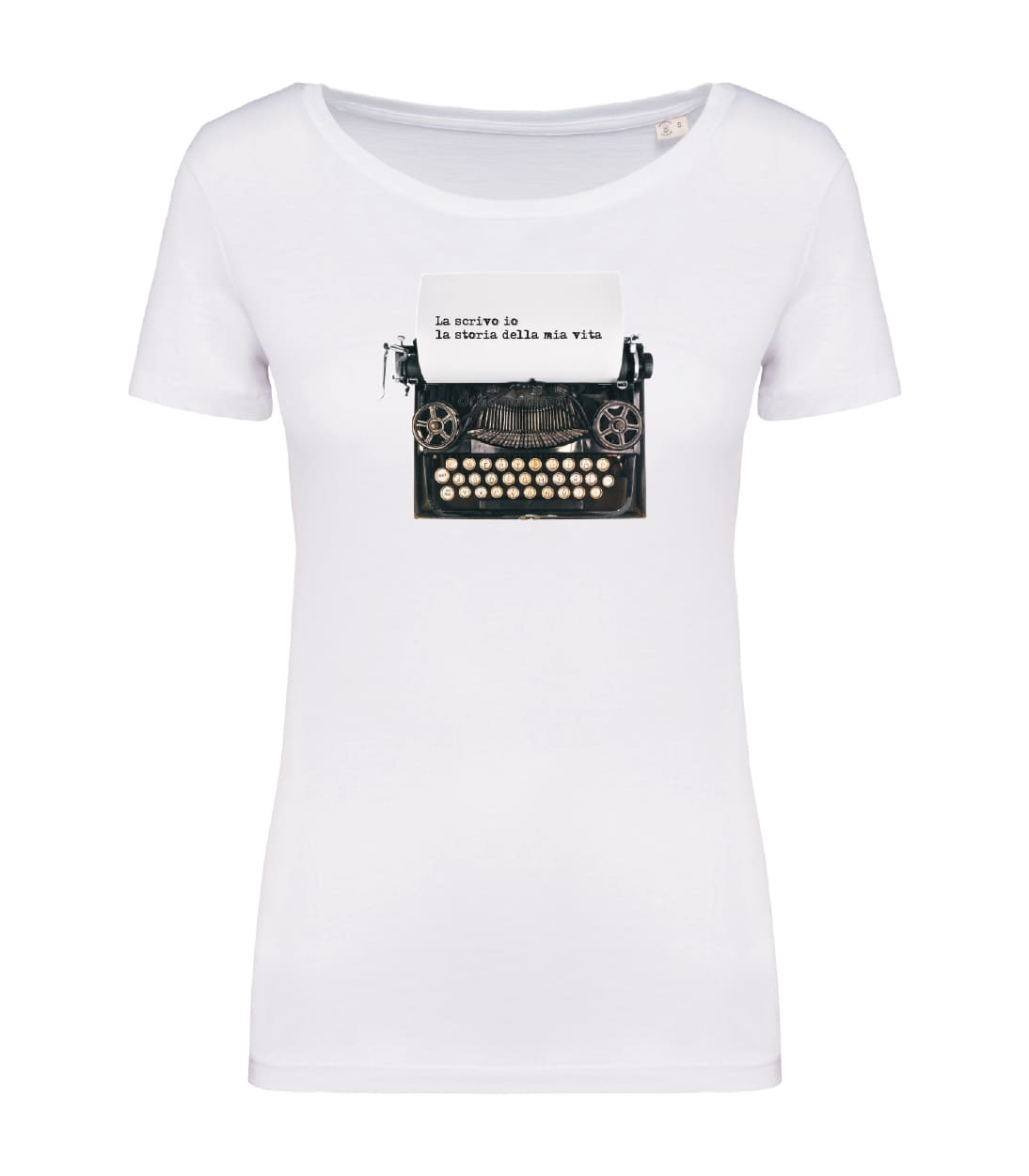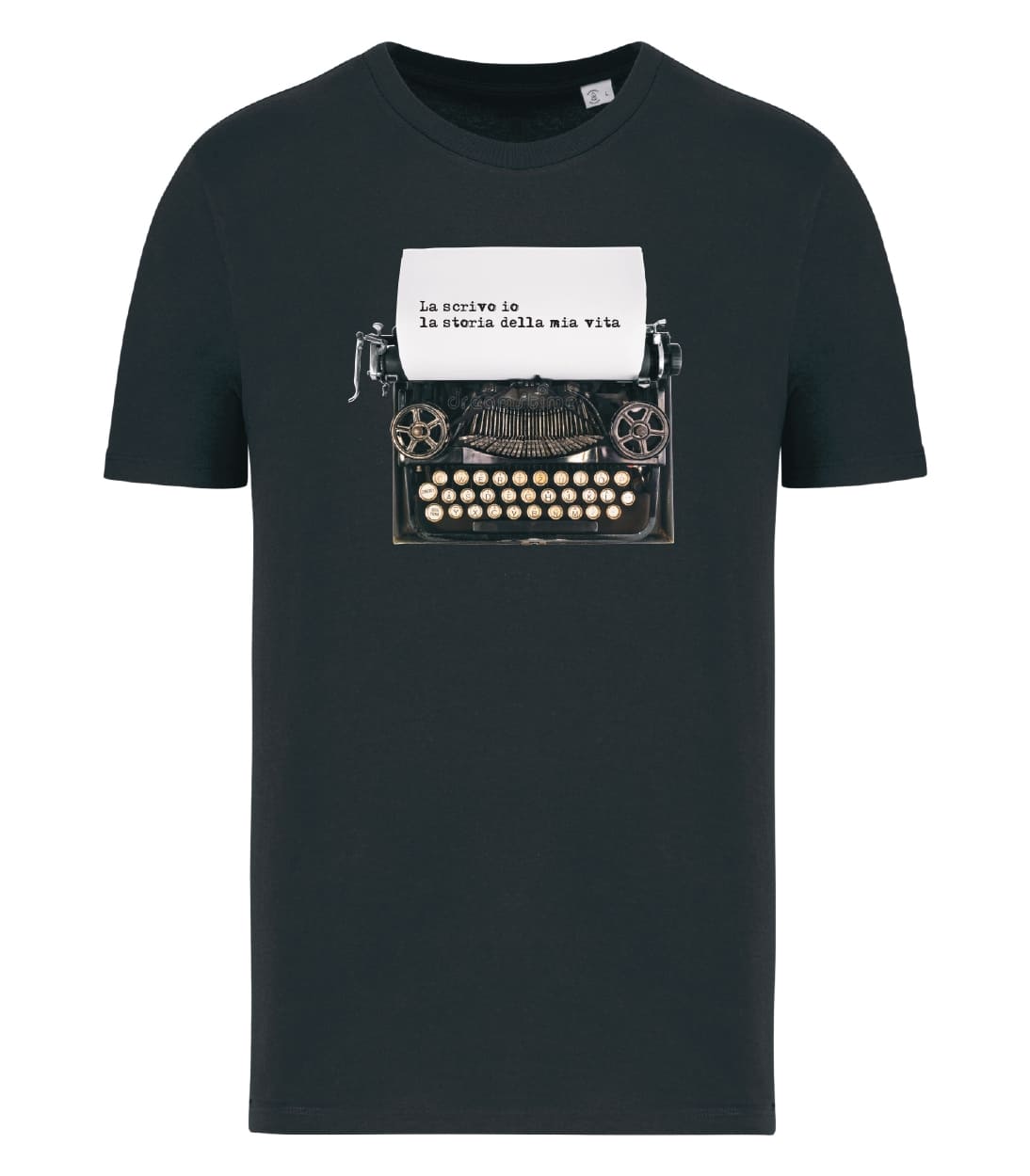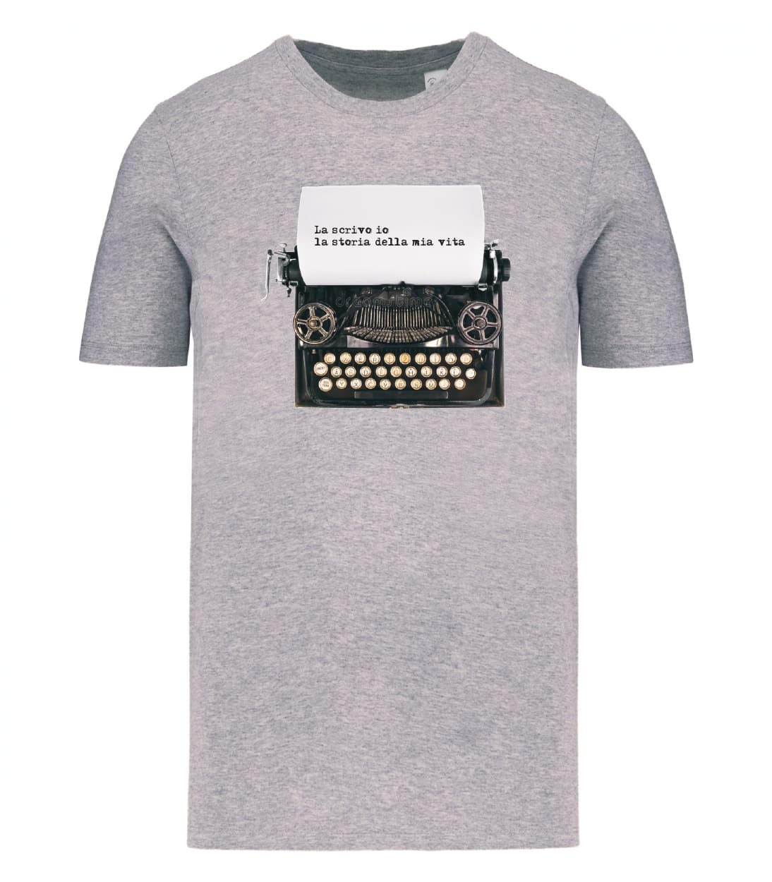 100% cotone biologico pettinato. Taglio aderente. Cuciture laterali. Capo con lavaggio agli enzimi. Collo a costine 1 x 1. Nastrino di rinforzo nel tessuto principale all’interno del collo. Finitura a doppia impuntura a fondo manica e fondo capo. Certificato STANDARD 100 by OEKO-TEX®N°CQ1007/7, IFTH