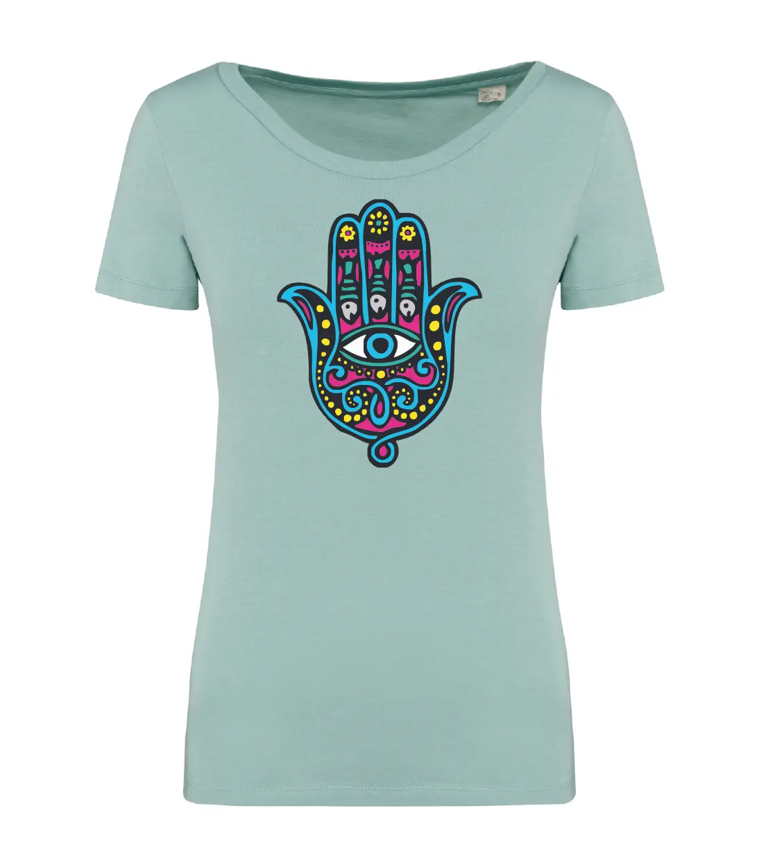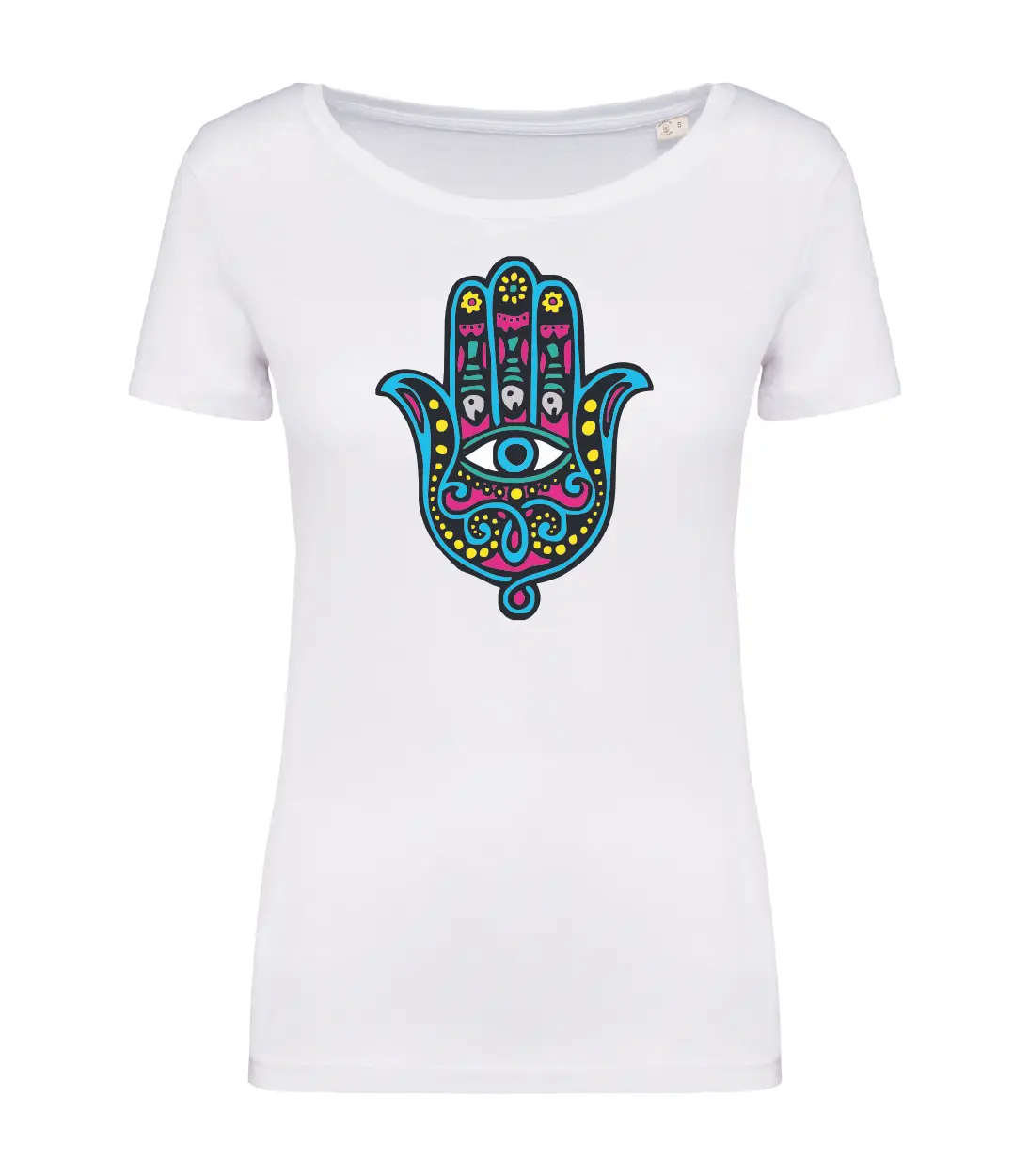 Mano di Fatima, conosciuta nel mondo anche con il nome di Mano di Miriam, Mano con l’Occhio Divino, Hamsa o Khamsa, termini quest’ultimi che significano “cinque”, numero molto importante per la religione ebraica, cristiana e musulmana.