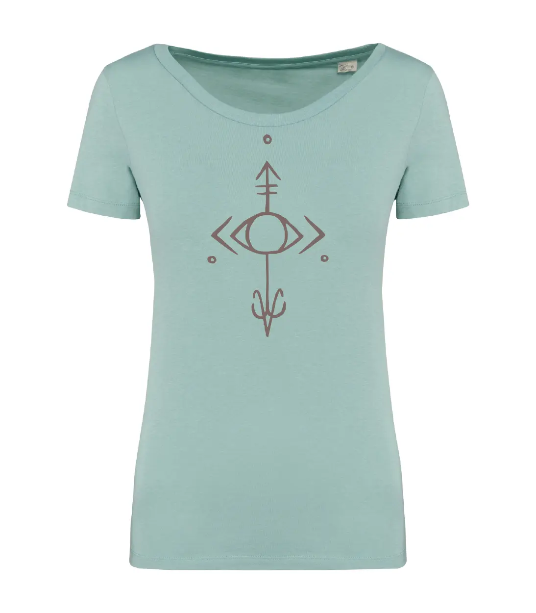 100% cotone biologico pettinato. Taglio aderente. Cuciture laterali. Capo con lavaggio agli enzimi. Collo a costine 1 x 1. Nastrino di rinforzo nel tessuto principale all’interno del collo. Finitura a doppia impuntura a fondo manica e fondo capo. Certificato STANDARD 100 by OEKO-TEX®N°CQ1007/7, IFTH